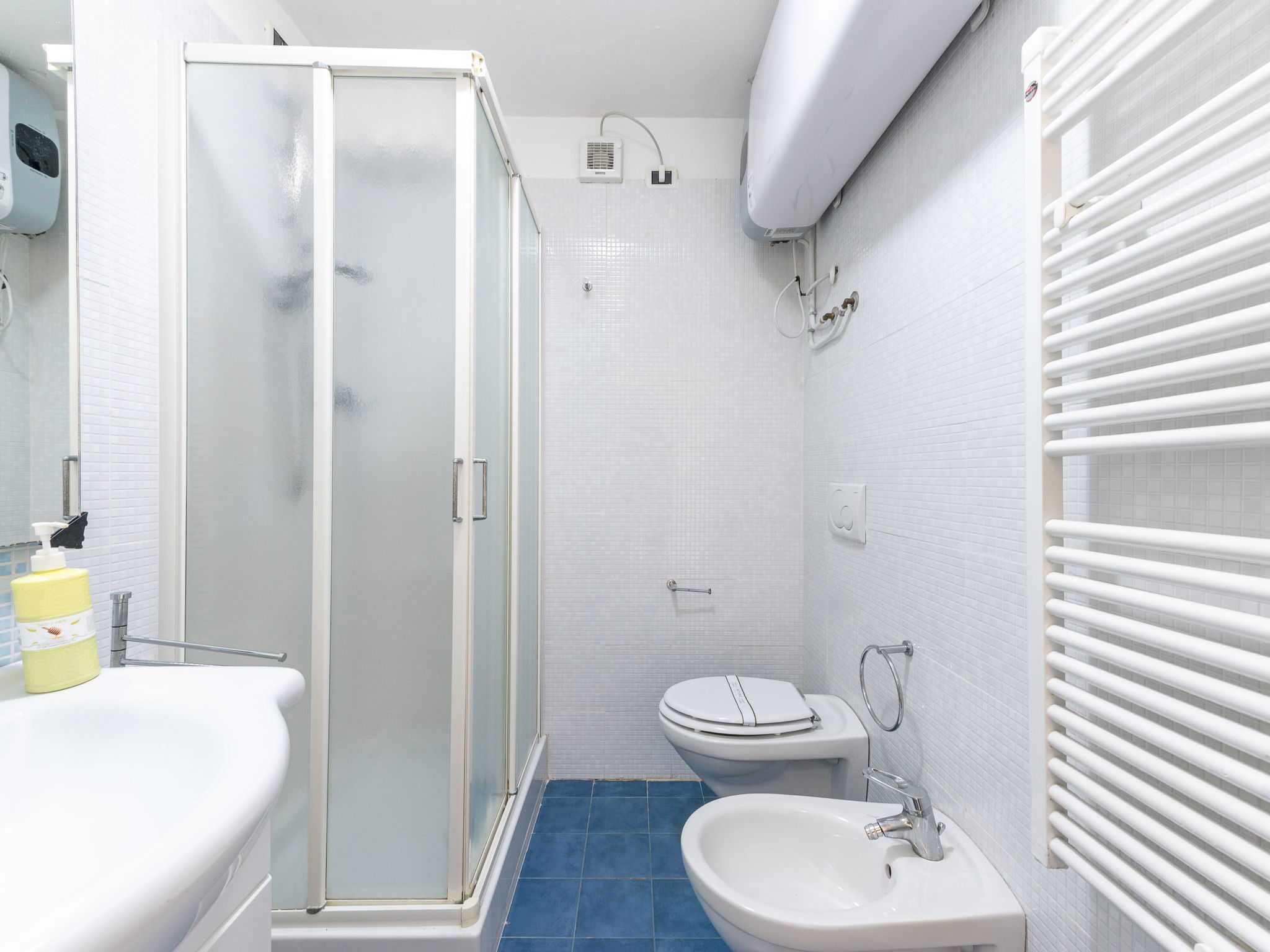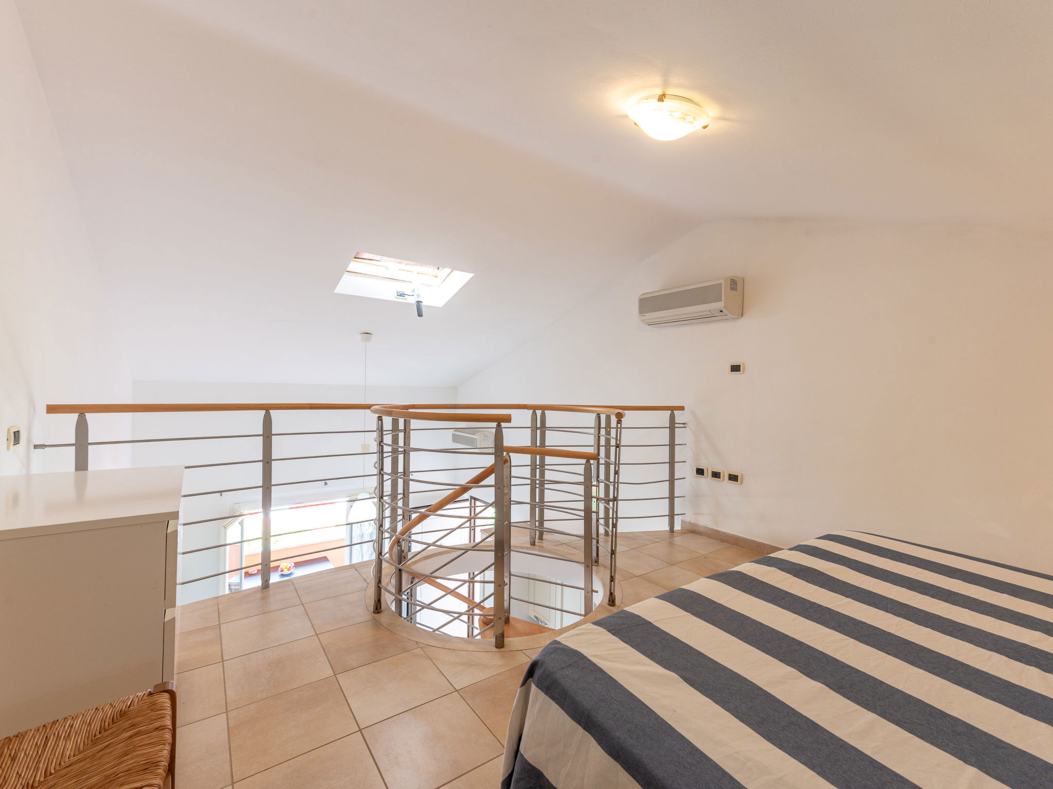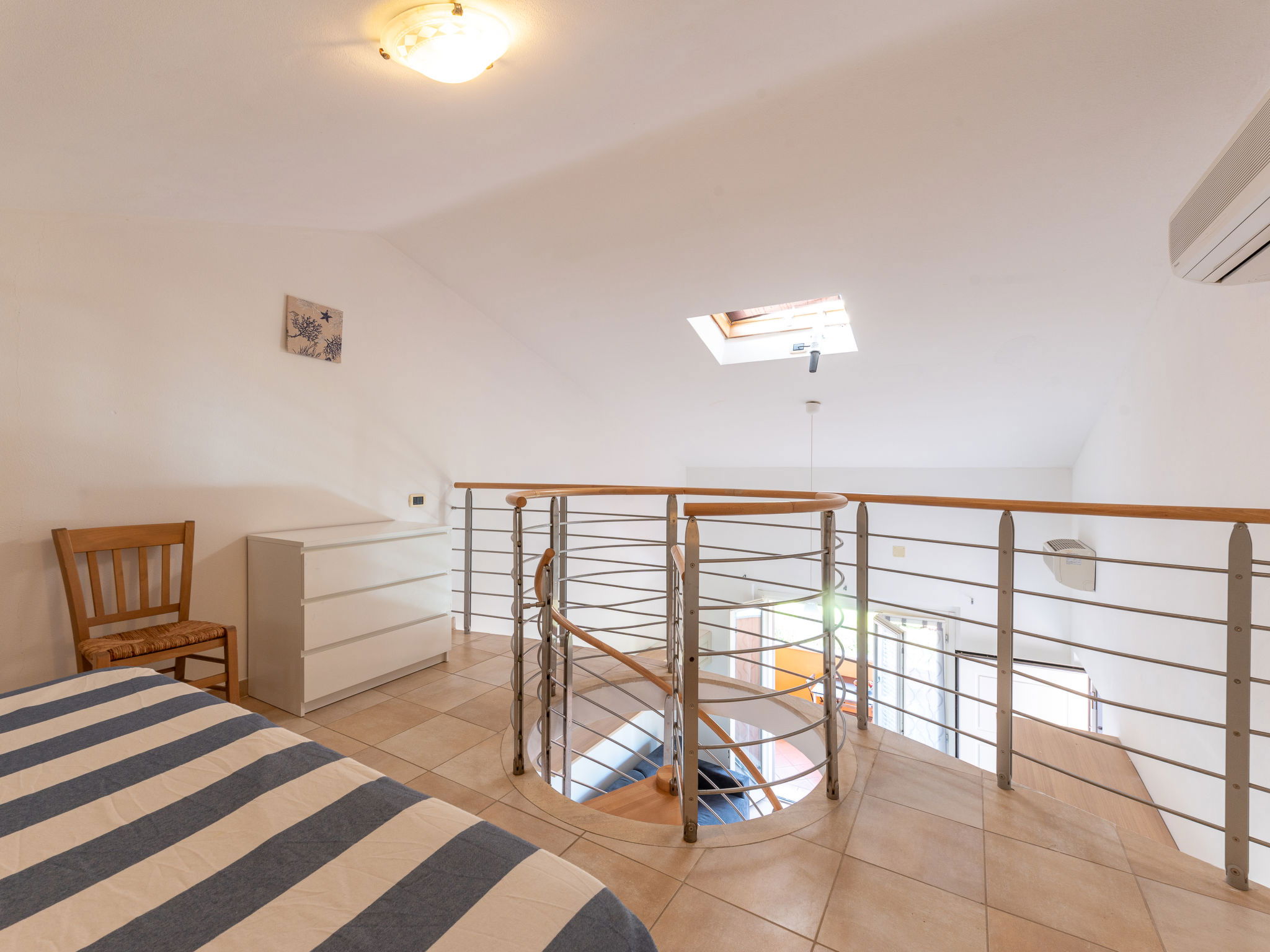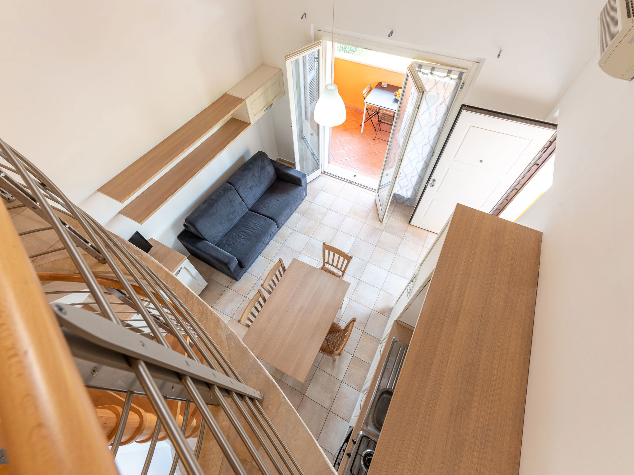 Appartement de 3 pièces 60 m2 sur 2 niveaux au 1er étage. Logement idéal pour 4 adultes + 2 enfants. Spacieux, aménagement fonctionnel: à l'étage supérieur: séjour/salle à manger avec 1 divan-lit double, table pour les repas, coin-cuisine et TV. Sortie sur la terrasse. 1 chambre avec 1 lit et 1 lit double. Cuisine ouverte (four, 4 feux, congélateur). Sortie sur la terrasse. Douche/bidet/WC. 2ème étage: (escalier en colimaçon) galerie ouverte avec 1 lit double. Air-conditionné, chauffage à air chaud. Terrasse 9 m2, couverte. Meubles de terrasse. A disposition: lit bébé jusqu'à 2 ans, sèche-cheveux. Internet (Connexion WIFI, gratuit). Place de parking. Veuillez noter: logement non-fumeur. Maximum 1 animal/ chien autorisé. IT053024A1U9LOE9RJ