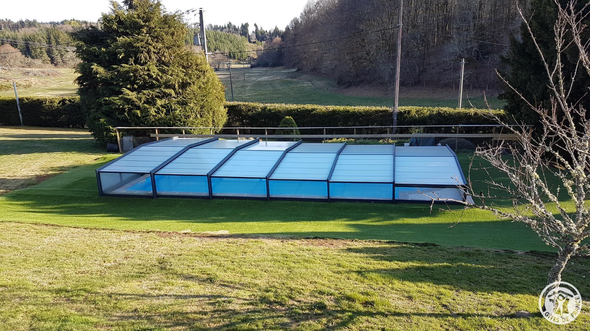 Forfait ménage de fin de séjour 120€ En plein cœur du parc naturel de Millevaches, cette maison traditionnelle offre un cadre paisible, parfaitement adapté pour explorer les merveilles de la région. Spacieuse, elle se trouve sur un terrain clos et arboré. Profitez d'une piscine couverte de 11,5 x 4,5 m, avec une profondeur en pente douce variant de 0,7 à 1,75 m. Cette piscine, sécurisée et verrouillée la nuit, est accessible durant la haute et très haute saison (utilisation de sel).