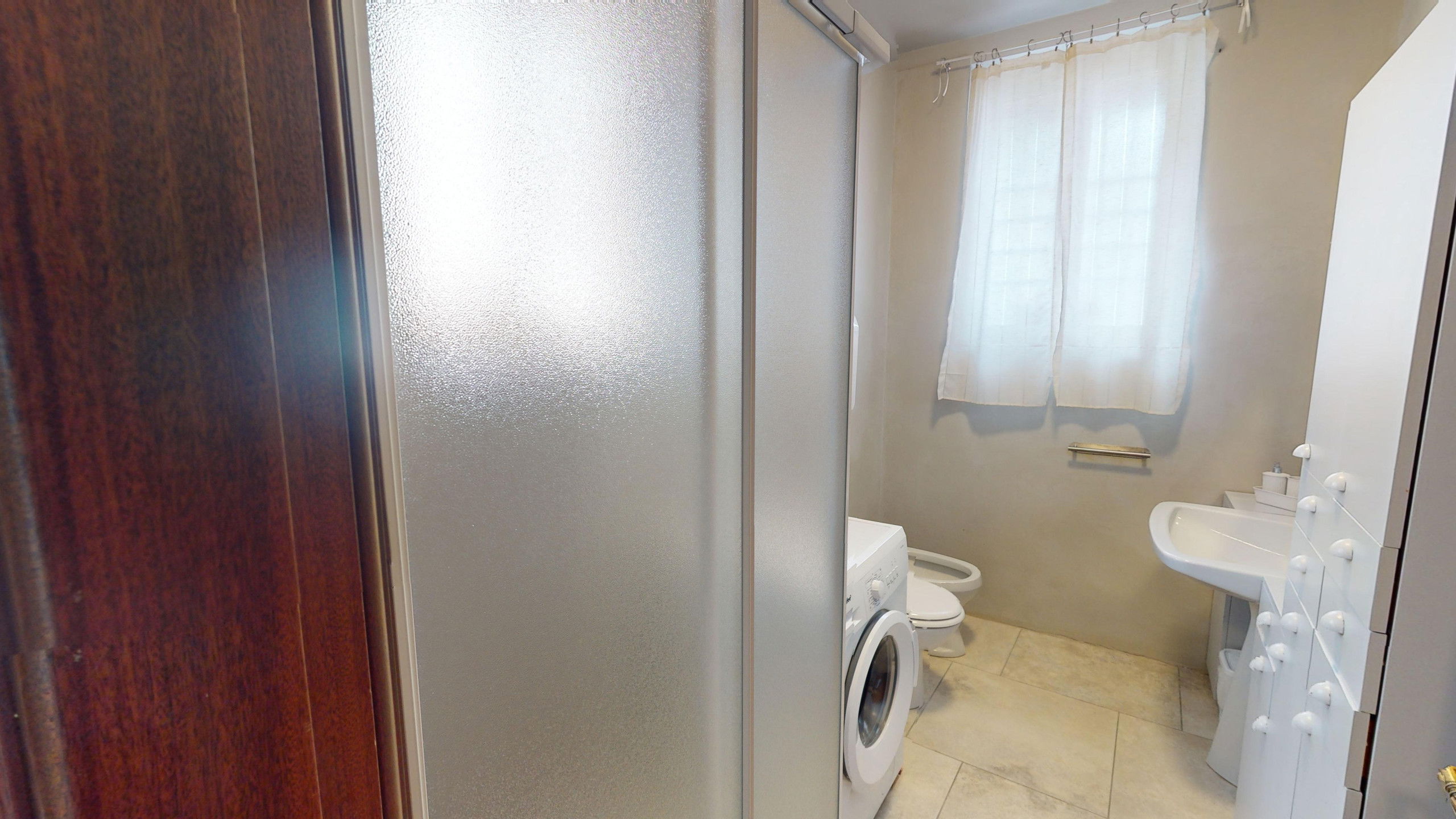 Depuis la terrasse, on accède à la cuisine équipée et meublée avec une plaque de cuisson à induction à deux feux, à la zone de vie lumineuse avec un canapé-lit et des fenêtres donnant sur le Lac, une chambre matrimoniale, deux salles de bains avec douche et machine à laver. Le bien est équipé d'écrans