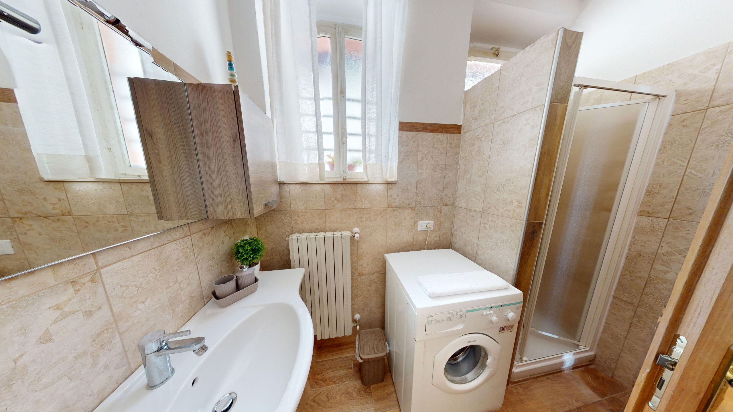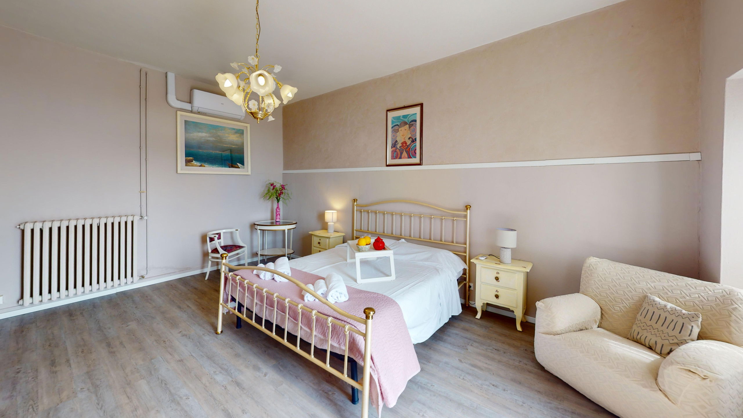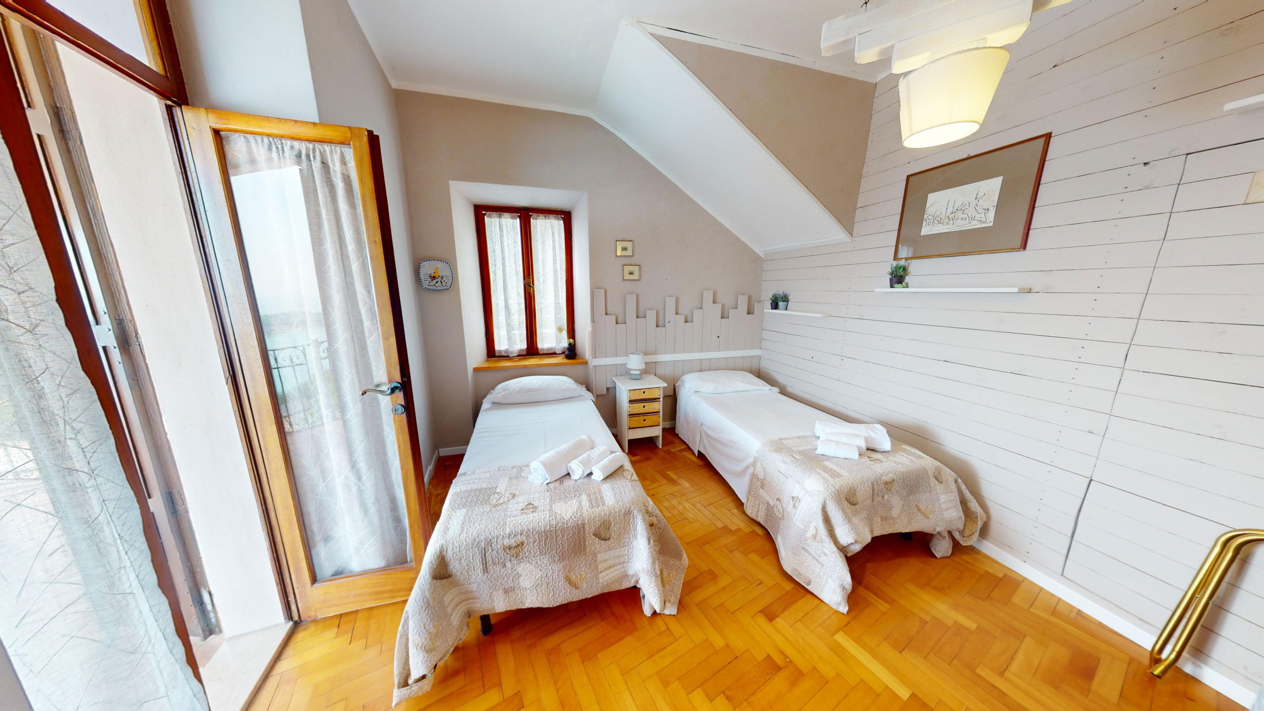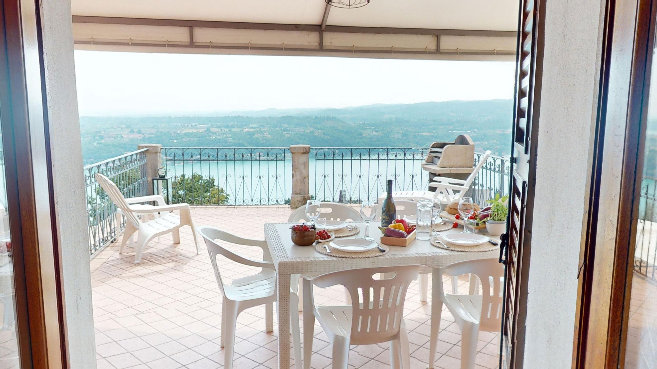 Depuis la terrasse, on accède à la vaste et lumineuse zone de vie avec un canapé-lit et des fenêtres donnant sur le Lac, cuisine avec plaque de cuisson à gaz entièrement équipée et fournie, une chambre matrimoniale, deuxième chambre spacieuse avec deux lits simples, salle de bain avec douche et machine à laver. Le bien est équipé d'écrans