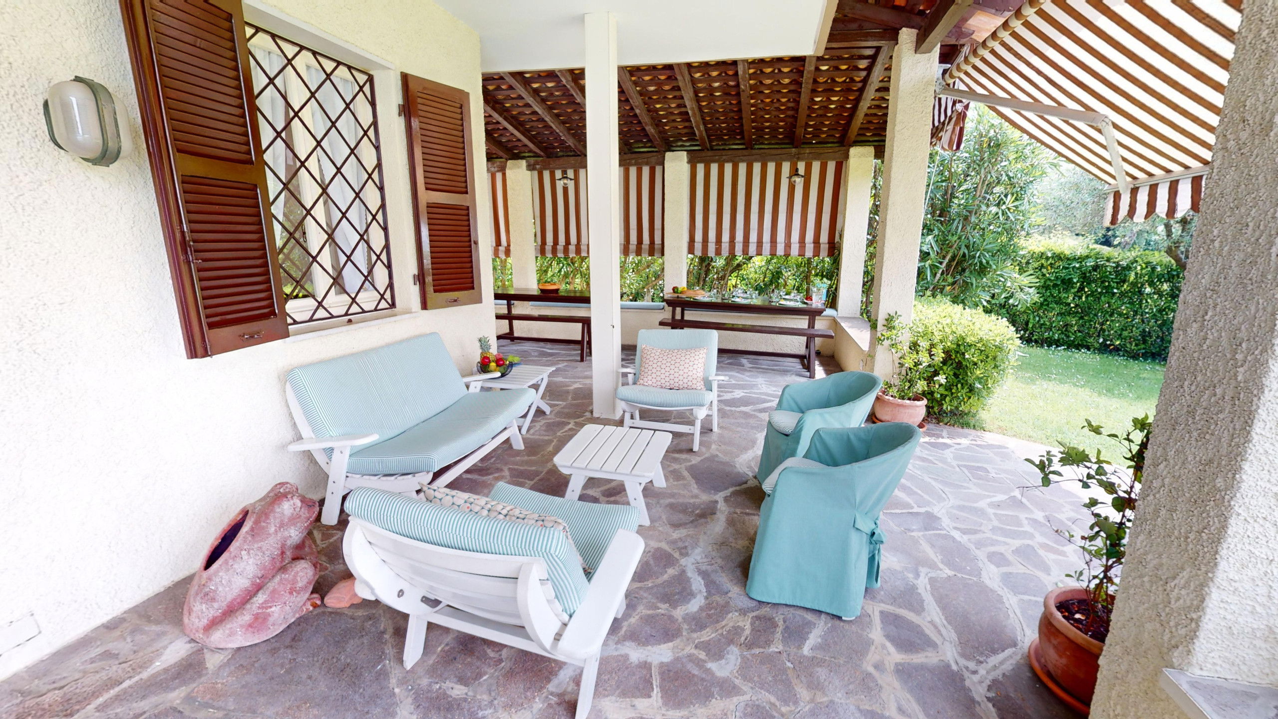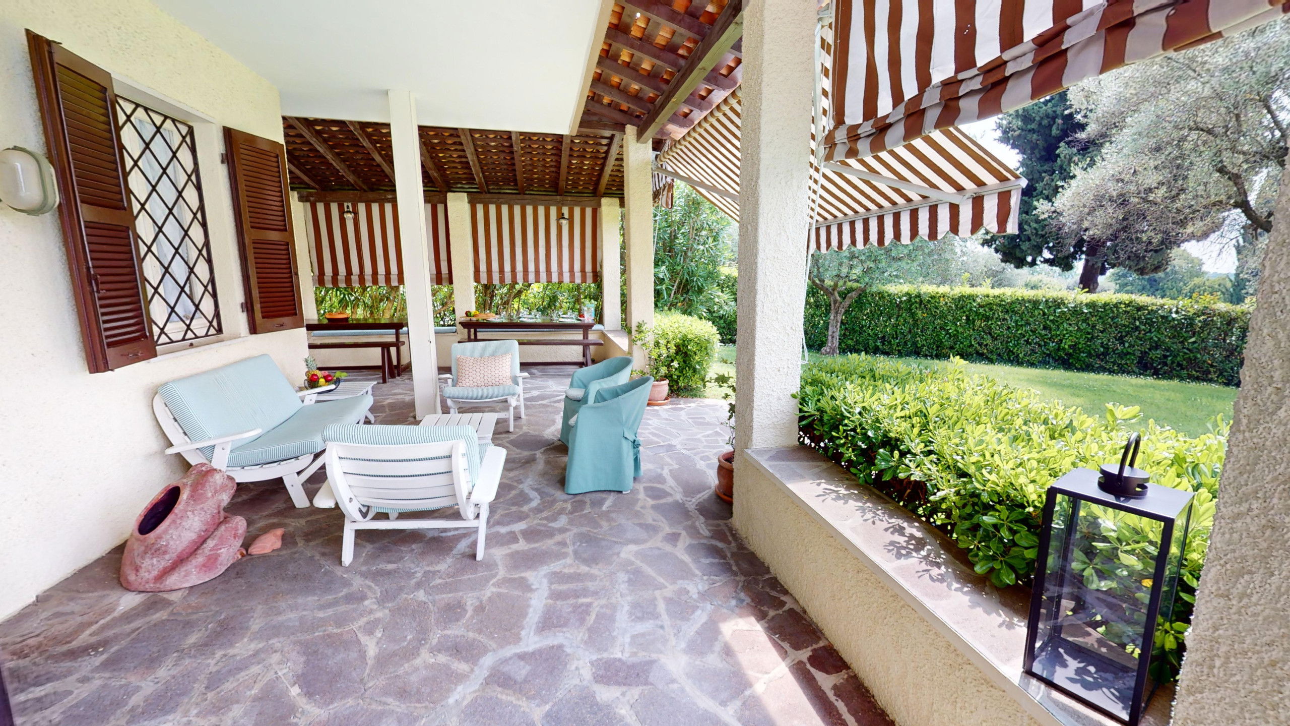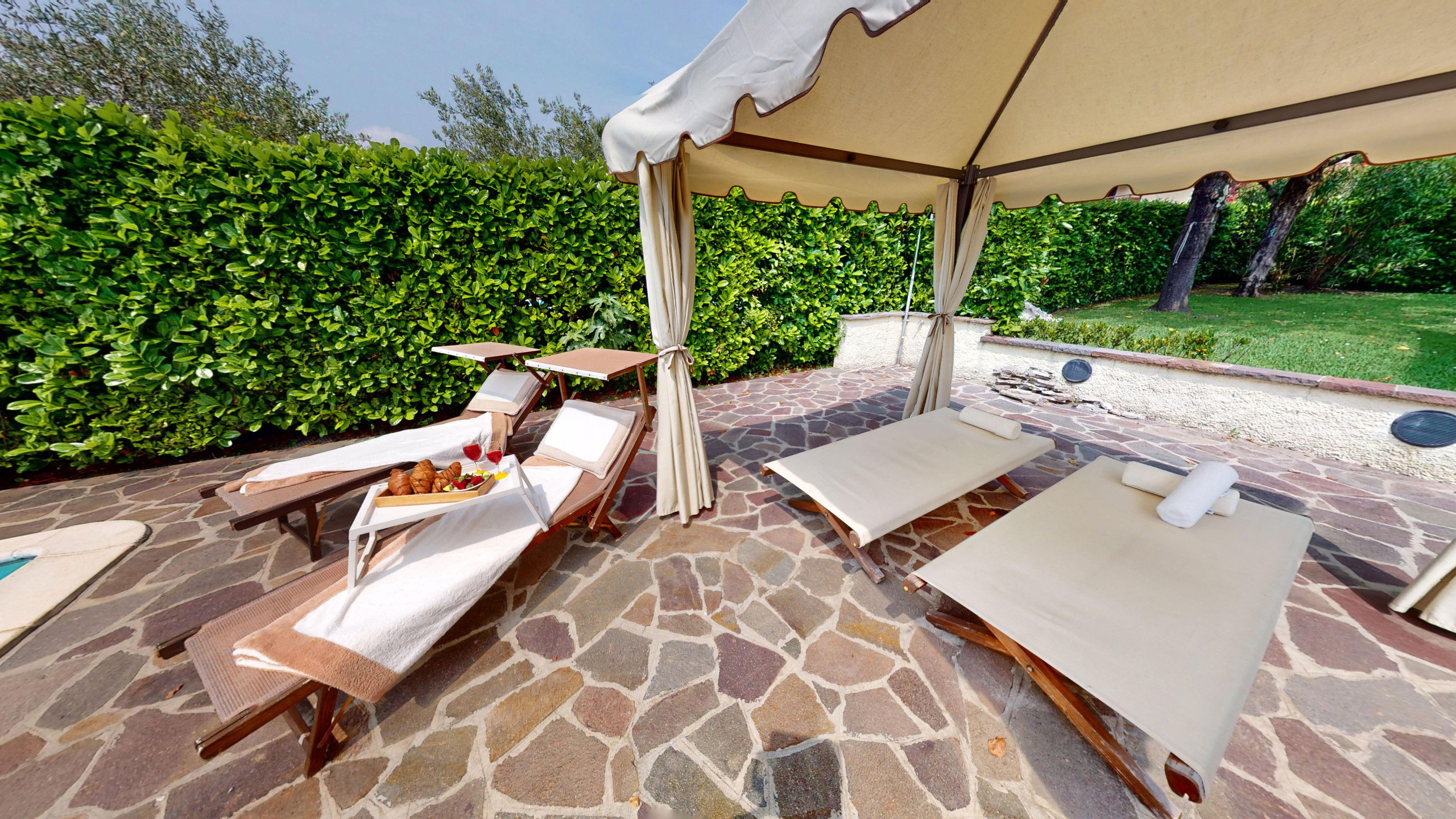 Les espaces extérieurs sont équipés de chaises longues et de pergolas pour des moments de pur détente et de plaisir sous le soleil estival.