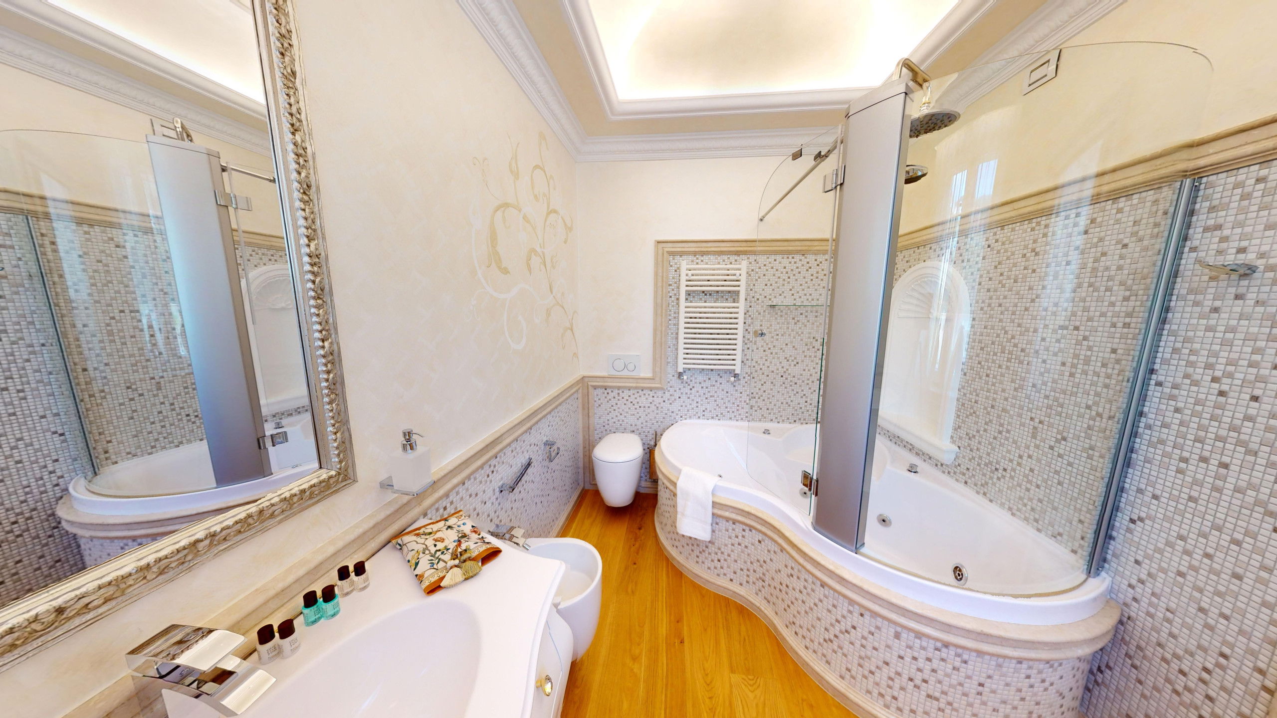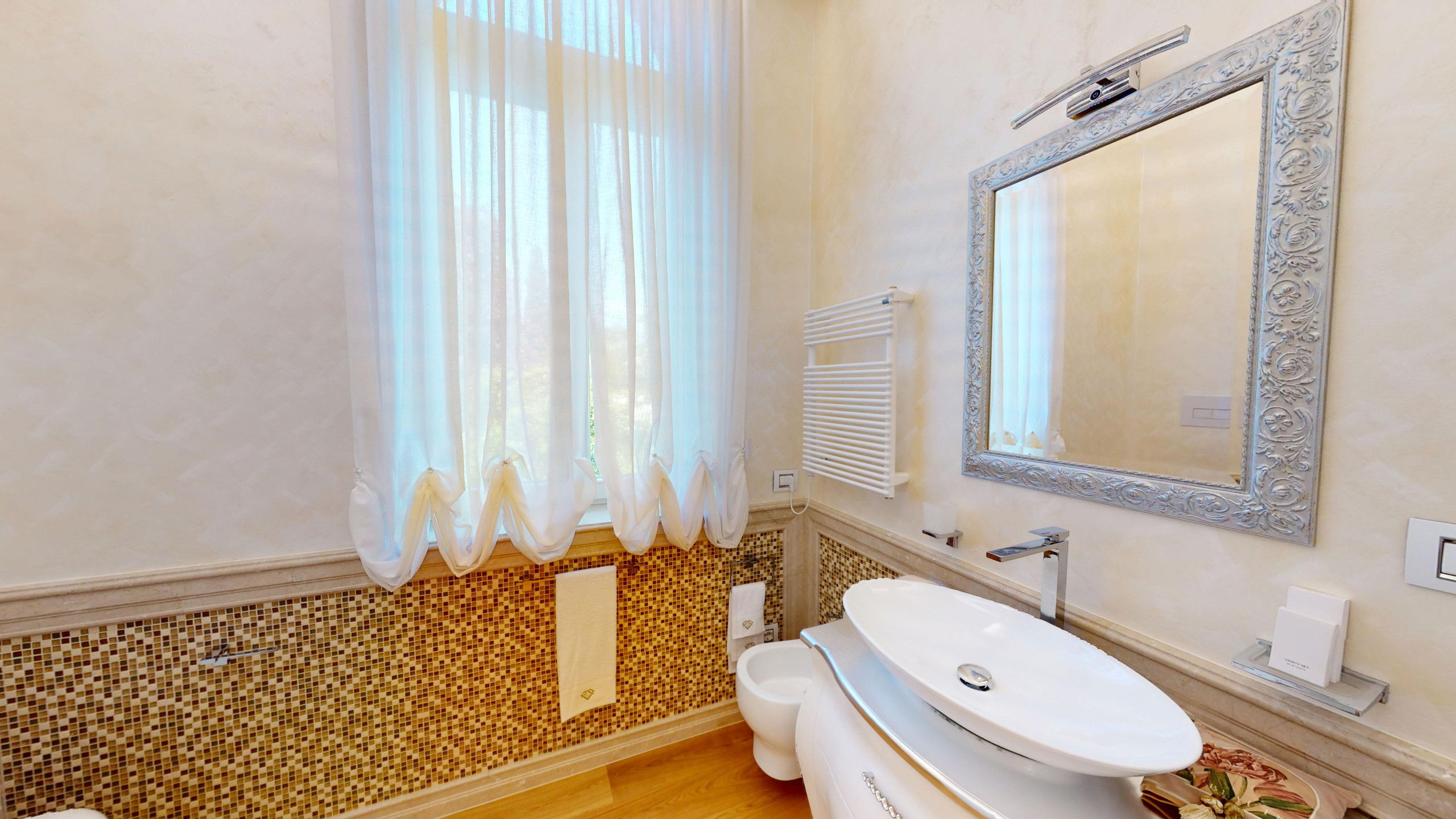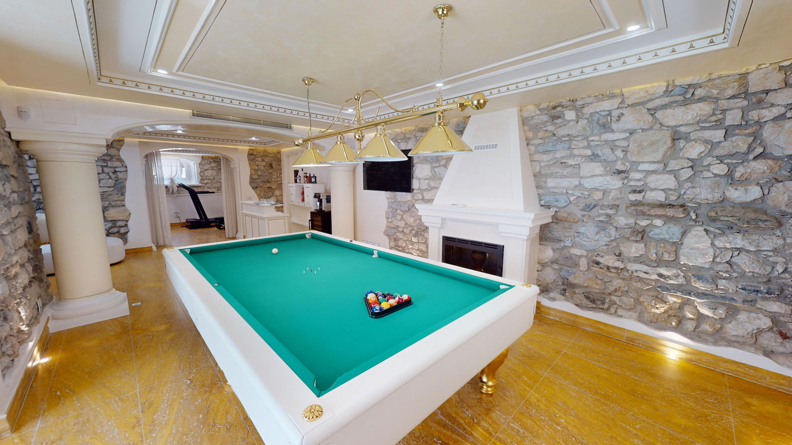 La villa est répartie sur quatre niveaux et dispose d'un ascenseur intérieur. Au premier étage se trouve la zone de vie lumineuse comprenant un grand salon avec cheminée, une salle à manger vue sur le lac et une cuisine moderne dotée de tous les conforts et une chambre avec salle de bain privative. Au deuxième étage se trouvent les trois chambres, toutes équipées d'une salle de bain avec baignoire et balcon. Au troisième étage, enfin, les combles avec salle de bain accueillent une chambre à coucher matrimoniale et une zone de vie. De là, on peut accéder à la terrasse solarium panoramique avec une vue splendide sur le lac. Au sous-sol, on peut accéder à la buanderie, à la salle de bain et à l'espace spa et bien-être, doté de sauna, hammam et jacuzzi. Au même niveau, on peut également trouver la salle de gym entièrement équipée et l'espace de loisirs avec mini-bar et billard, d'où l'on peut accéder directement à la piscine. Depuis le jardin soigneusement entretenu, on peut accéder à l'espace repas extérieur avec pergola, table, barbecue et cuisine extérieure avec jacuzzi.