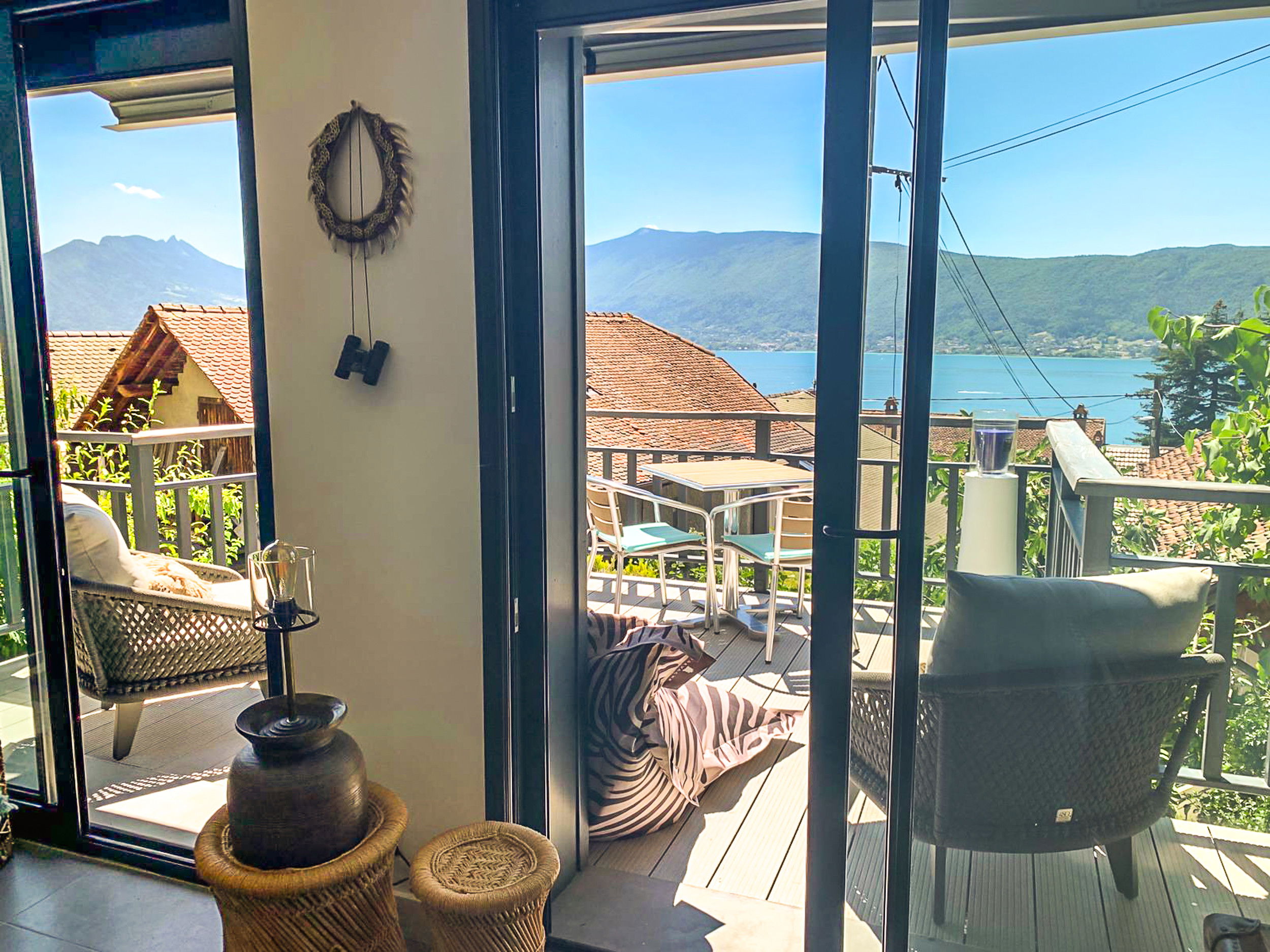 - Balcon / Terrasse de 18m2 avec vue sur le lac et les montagnes exposé Sud / Ouest