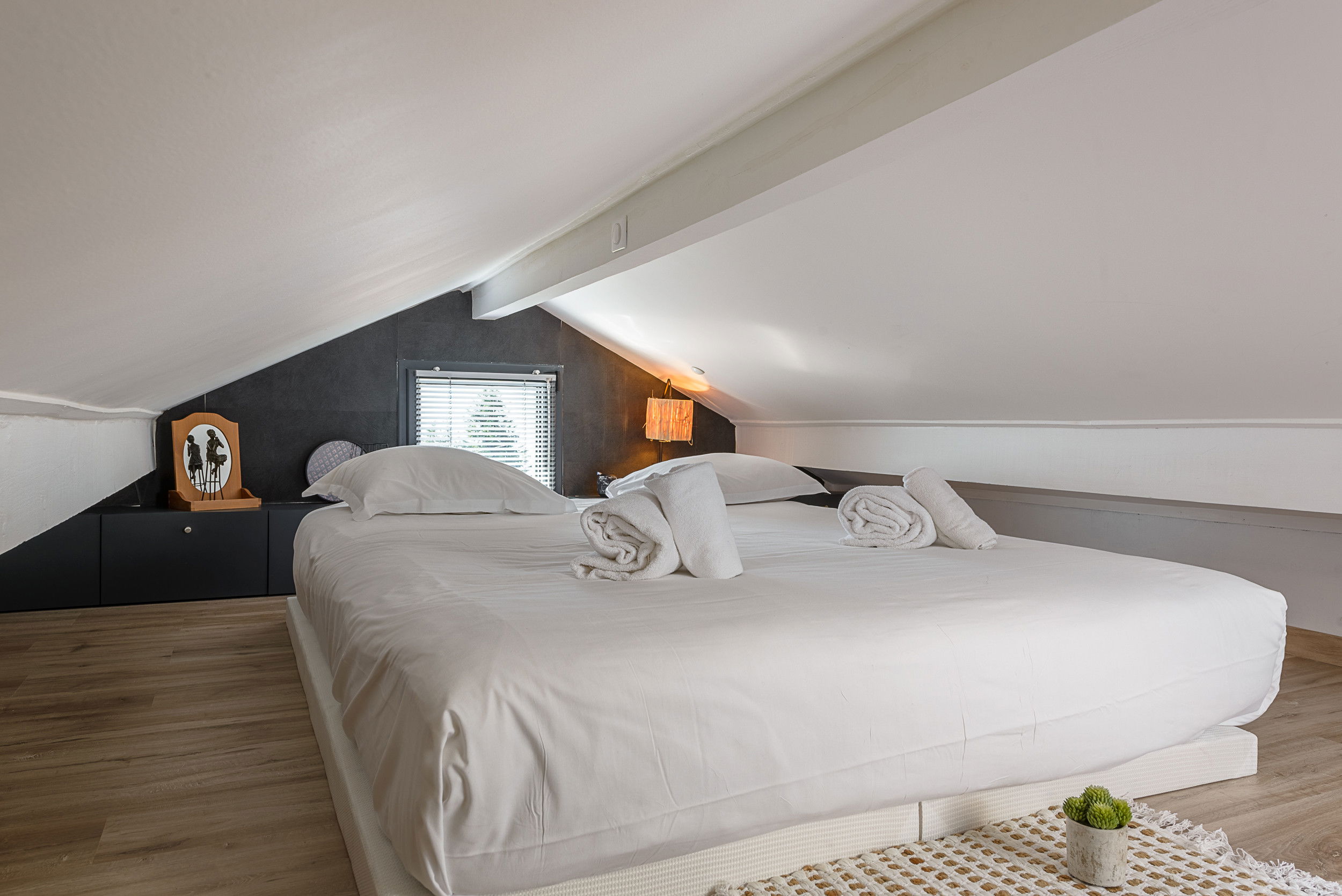 - Chambre n°2 : lit double sous les combles (convient à 1 adulte agile, 2 enfants ou deux ados)