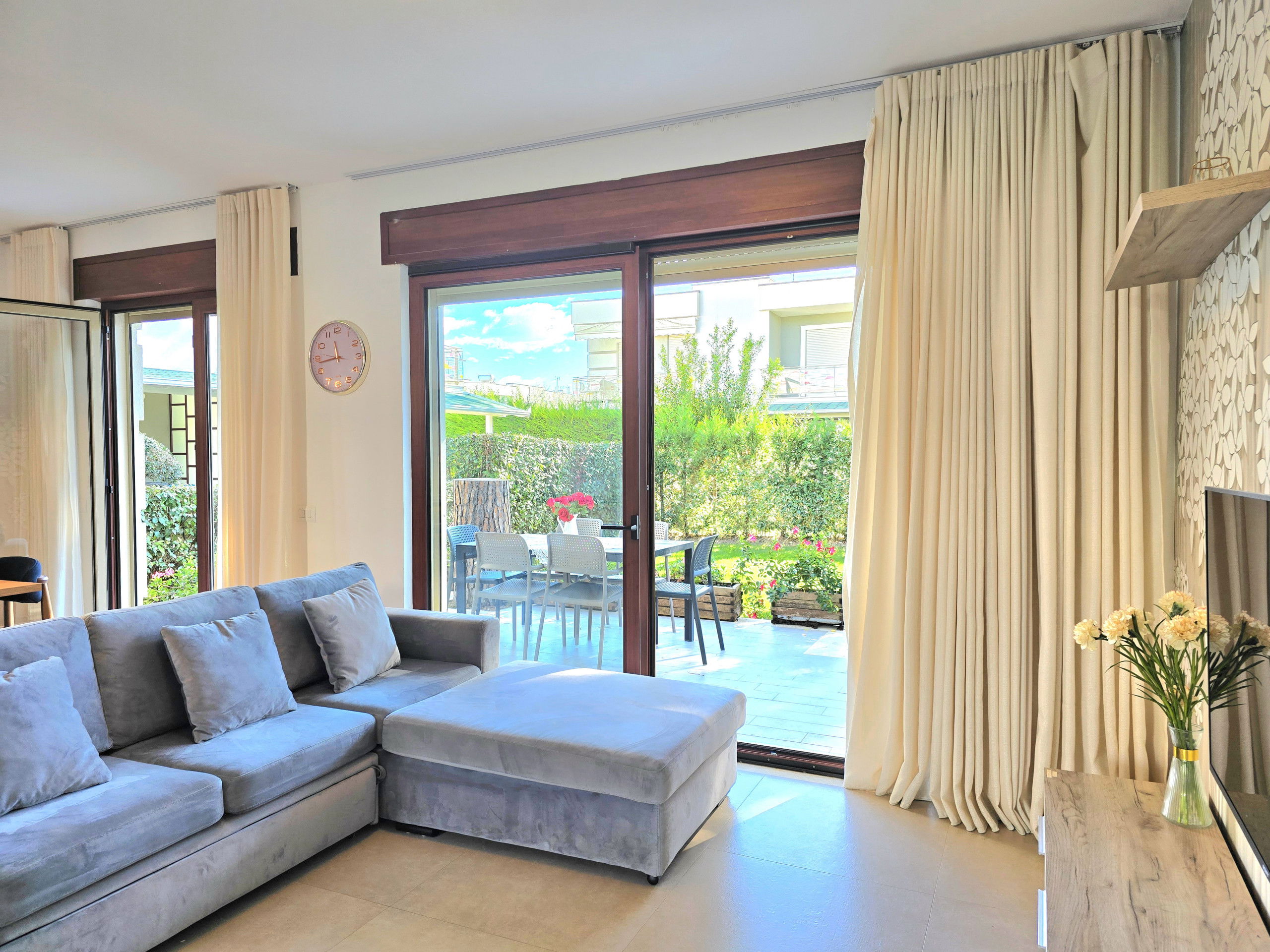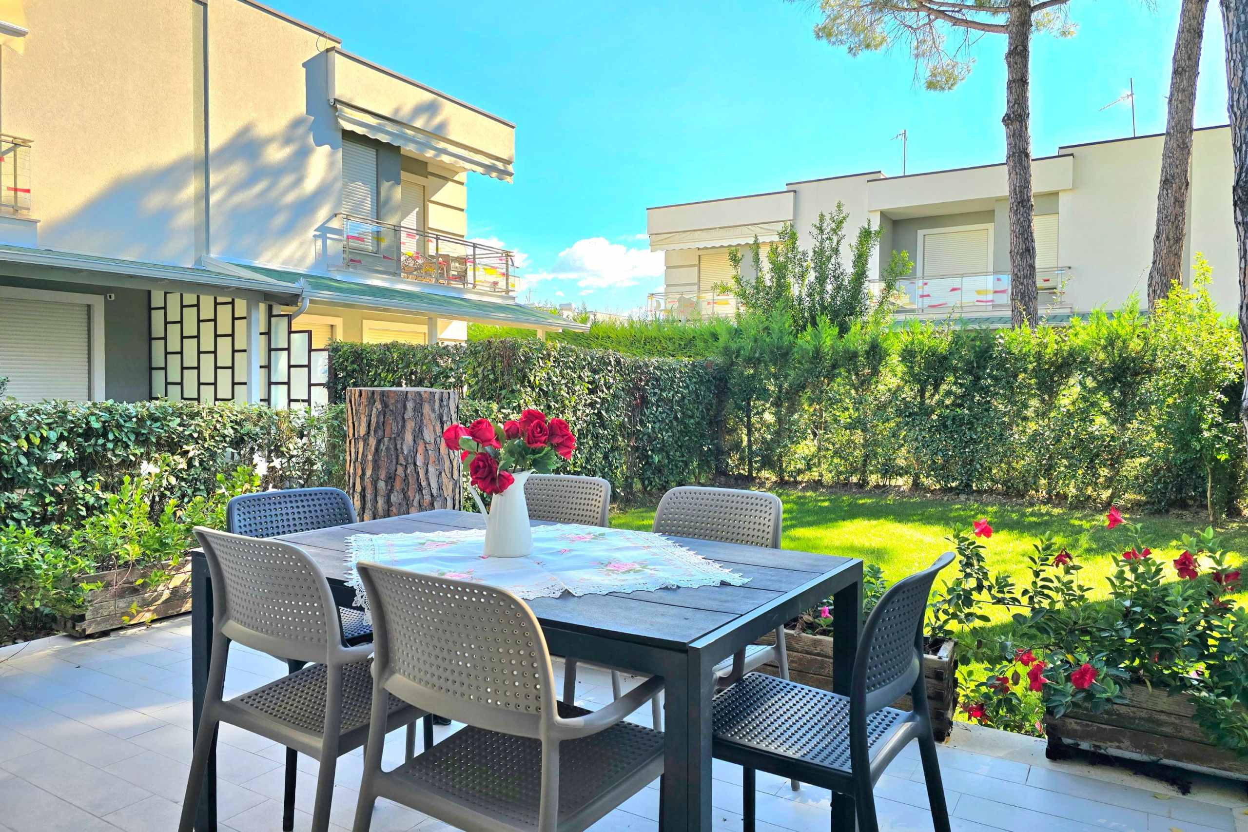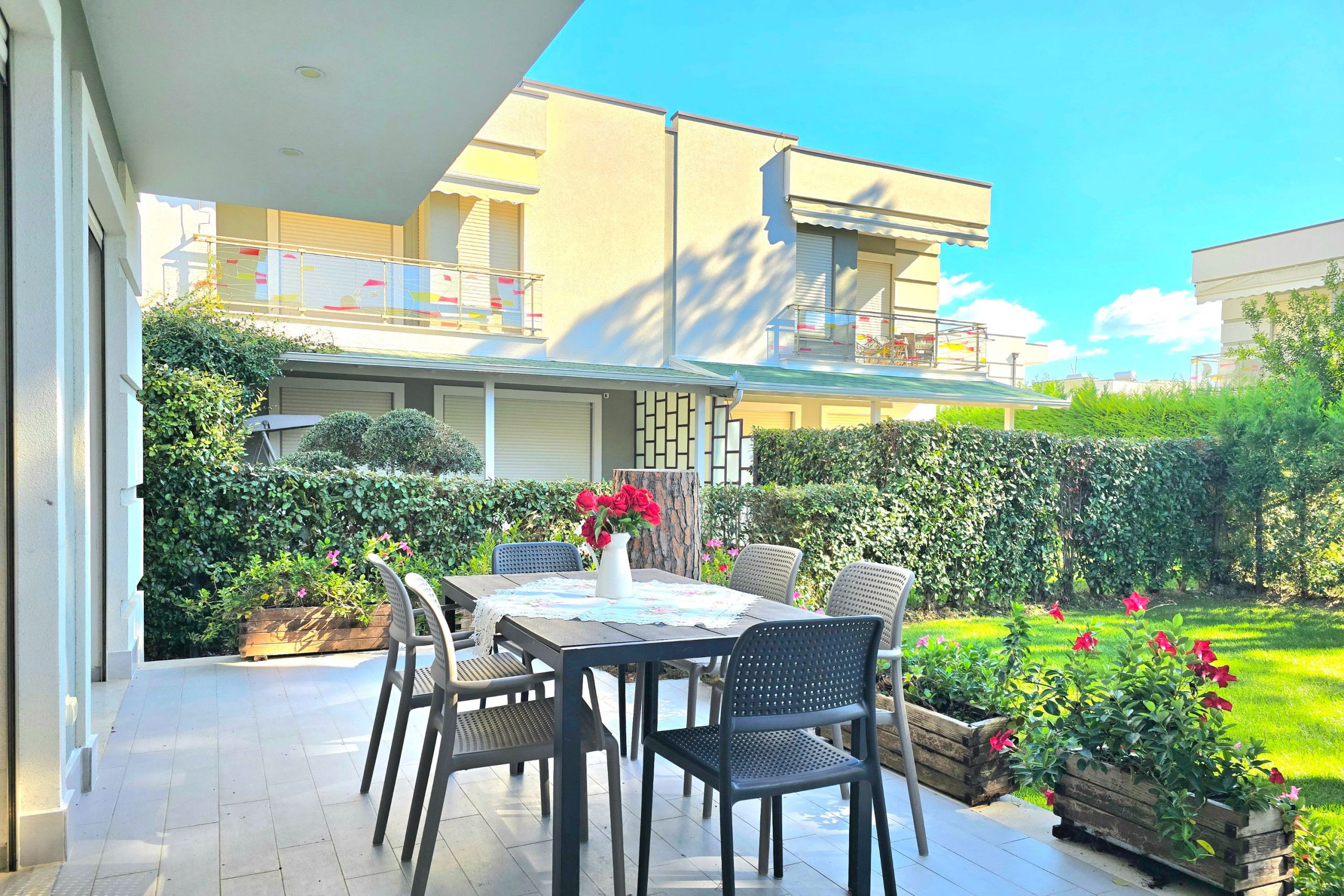Elle dispose de jardin, mobilier de jardin, 20 m² de terrasse, lave-linge, sèche-linge, fer à repasser, accès internet (wifi), sèche-cheveux, balcon, chauffage pompe à chaleur, climatisation dans tout le logement, parking extérieur bâtiment proche, 1 Télévision.