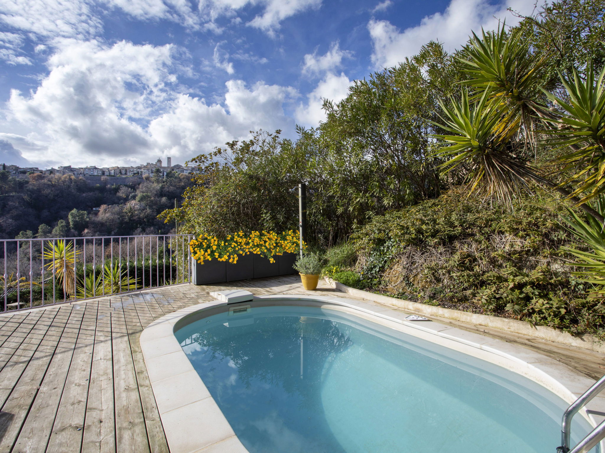 Belle villa "Villa Bellevue", mitoyenne. À 7 km de la mer, à 7 km de la plage. A usage privé: piscine (2 x 4 m, profondeur 150 cm, disponibilité saisonnière: 01.Avr. - 31.Oct.) avec alarme de sécurité. Douche extérieure. Magasin d'alimentation 2.5 km, supermarché 2.5 km, centre commercial 4.5 km, restaurant 2.5 km, arrêt de bus 3 km, plage de galets "Plage de la batterie" 7 km. Attractions à proximité: Shopping Promenade 4.5 km, Promenade des anglais 18 km, Musée Renoir 10 km, Village de St Paul de Vence 2.5 km. Région de randonnées: Le Mercantour 45 km. Veuillez noter: voiture recommandée. La remise des clés a lieu à l’agence de Cagnes sur Mer, 8 km.