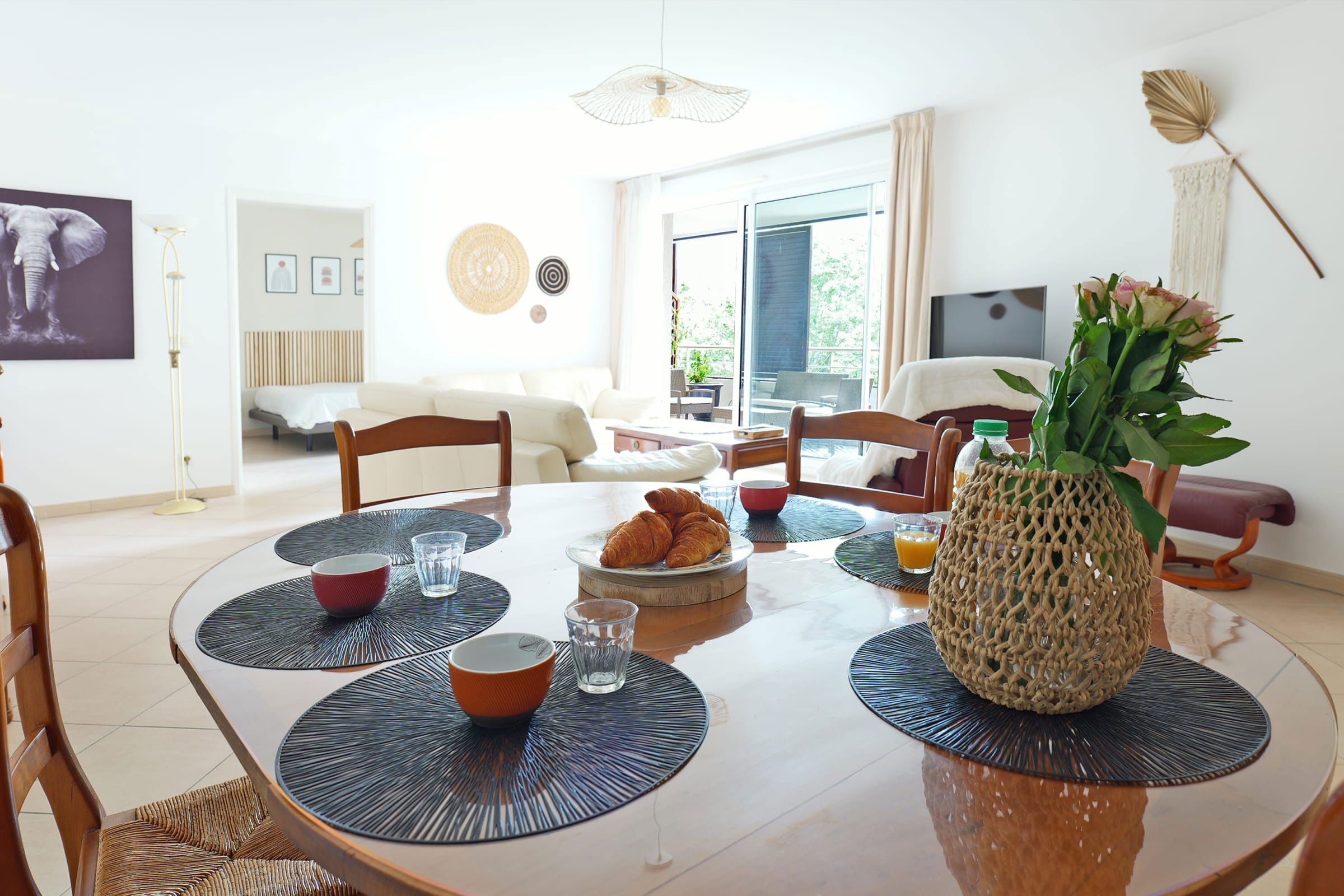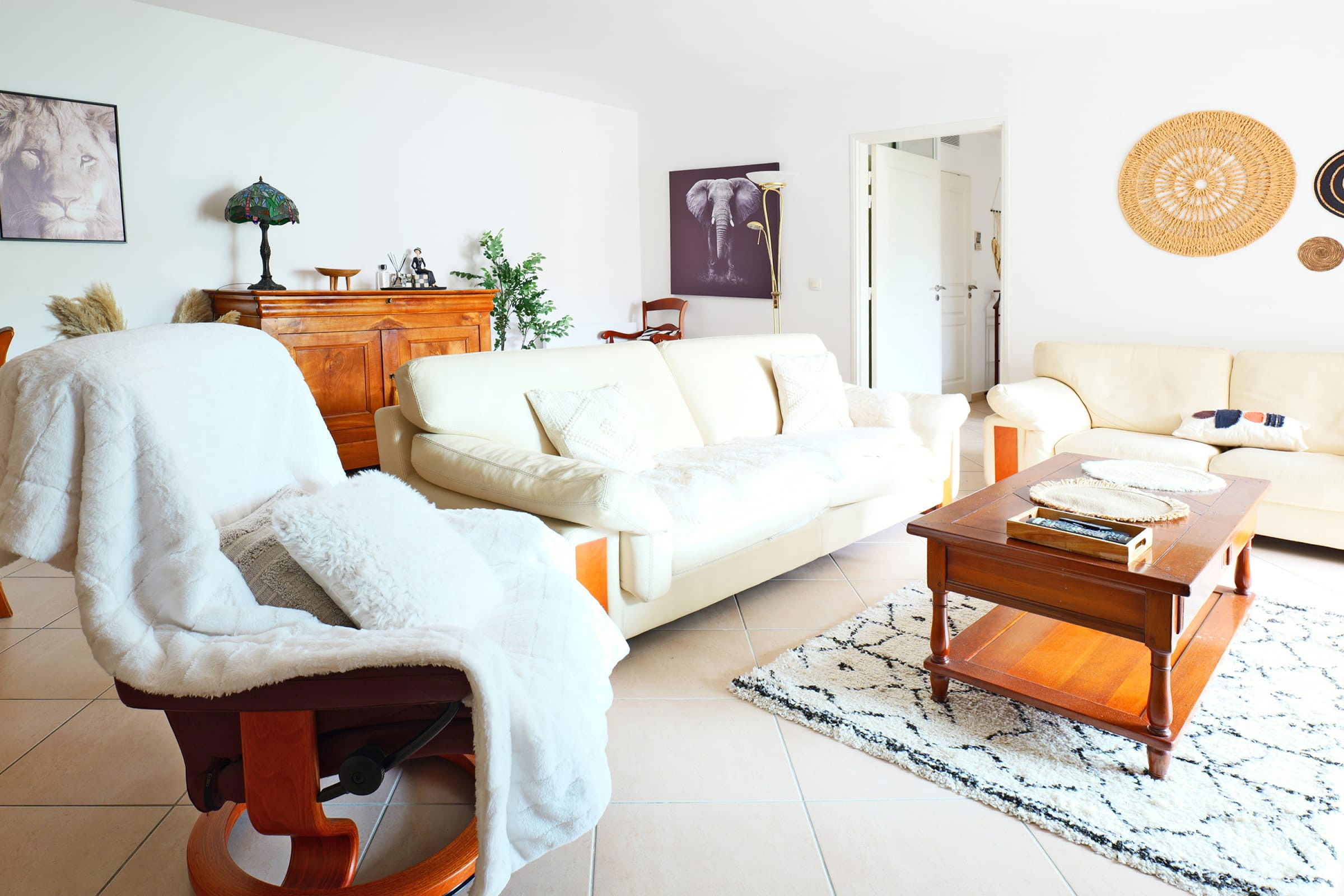 - un grand espace de vie ouvert incluant un salon et une salle à manger,
