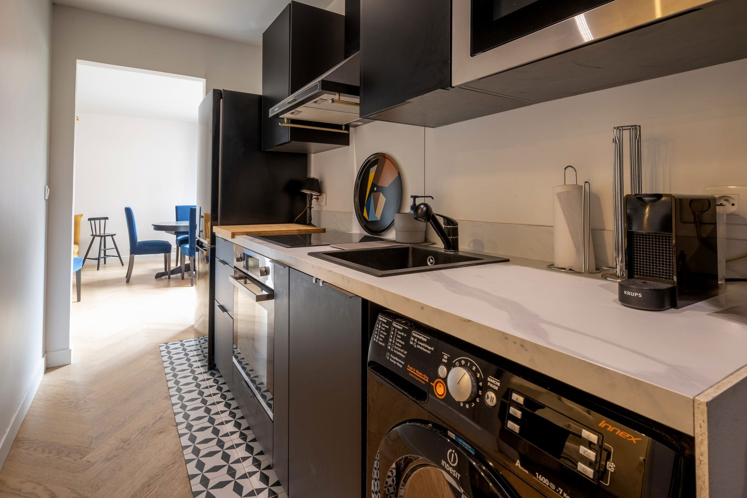 - une cuisine parfaitement équipée (machine à café, bouilloire, four, micro-ondes, plaques de cuisson, réfrigérateur, congélateur),