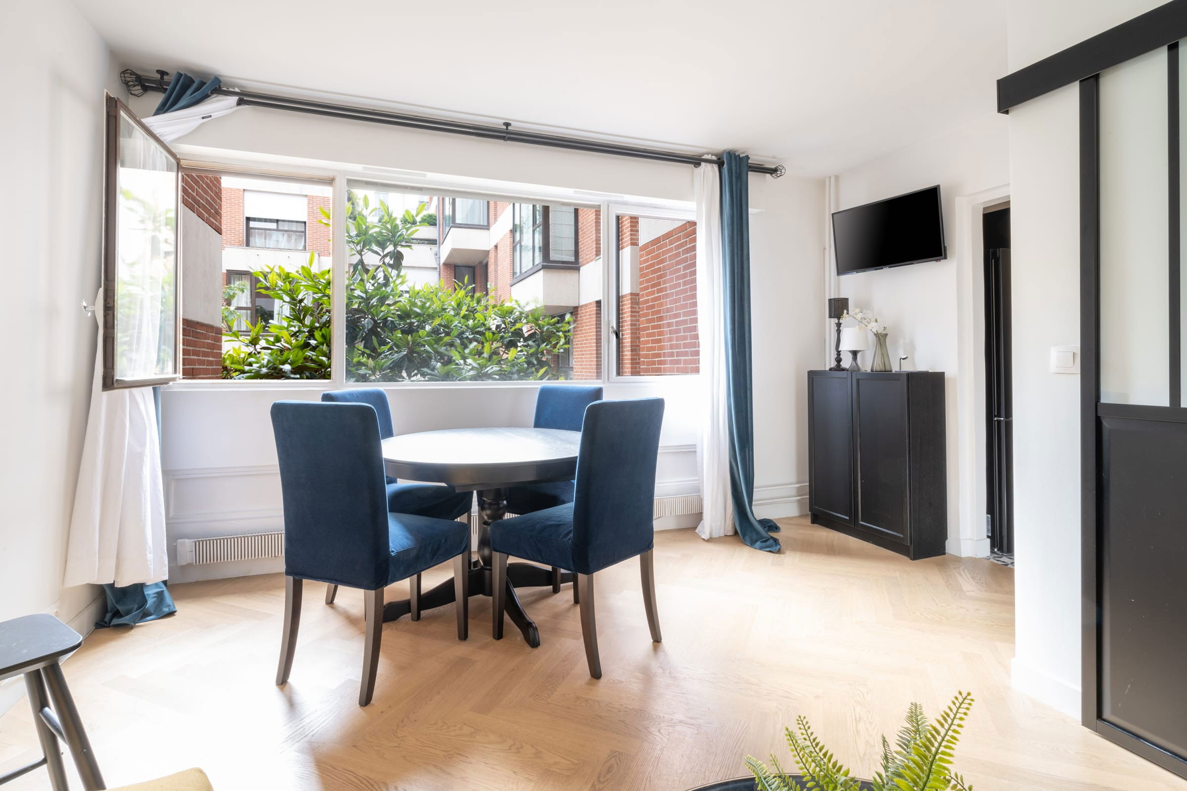 Découvrez ce studio élégant et confortable situé au 1er étage avec ascenseur, dans une résidence sécurisée et calme, avec vue sur un square intérieur arboré.