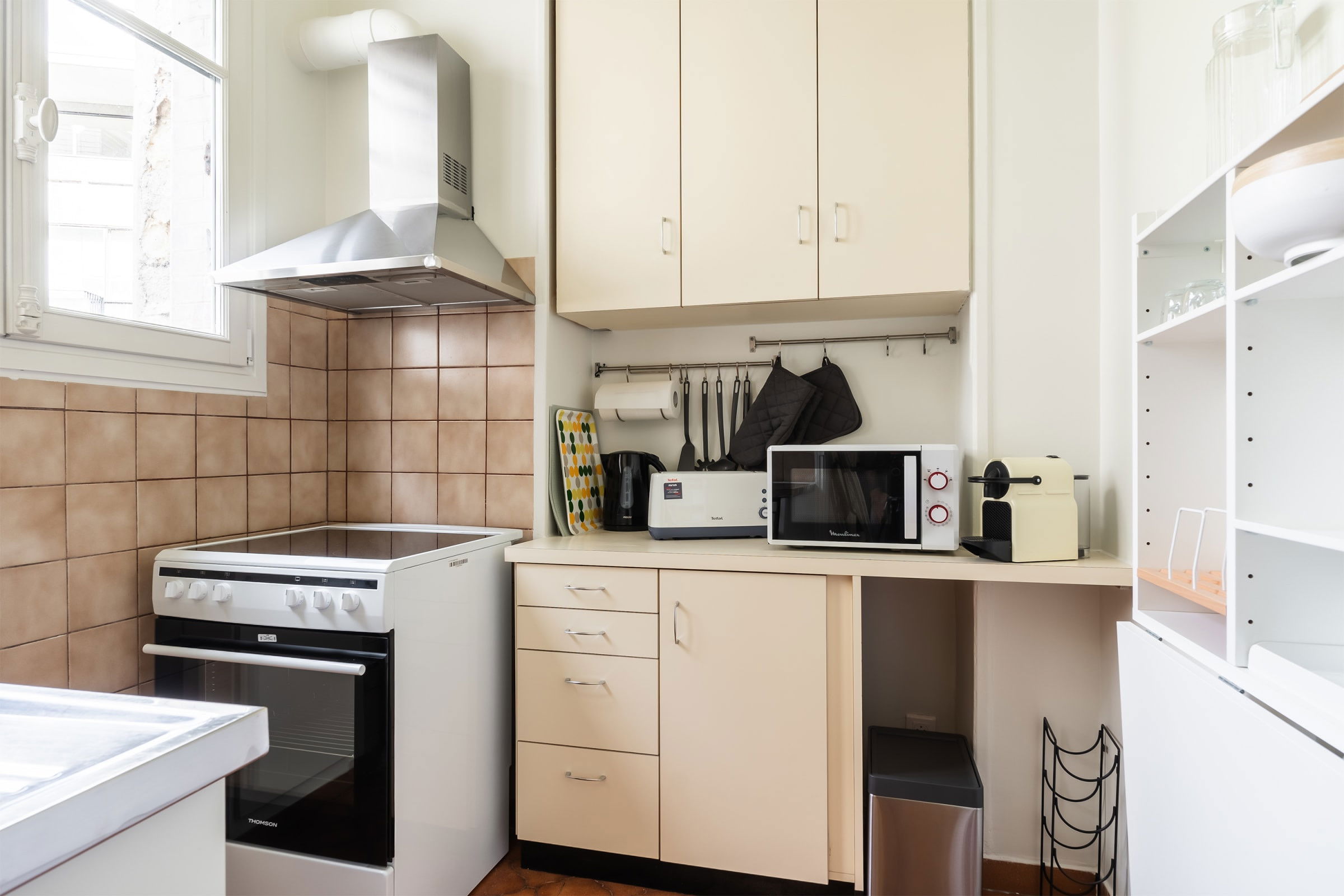 - une cuisine séparée parfaitement équipée (machine à café, grille-pain, bouilloire, four, micro-ondes, réfrigérateur, plaques de cuisson),