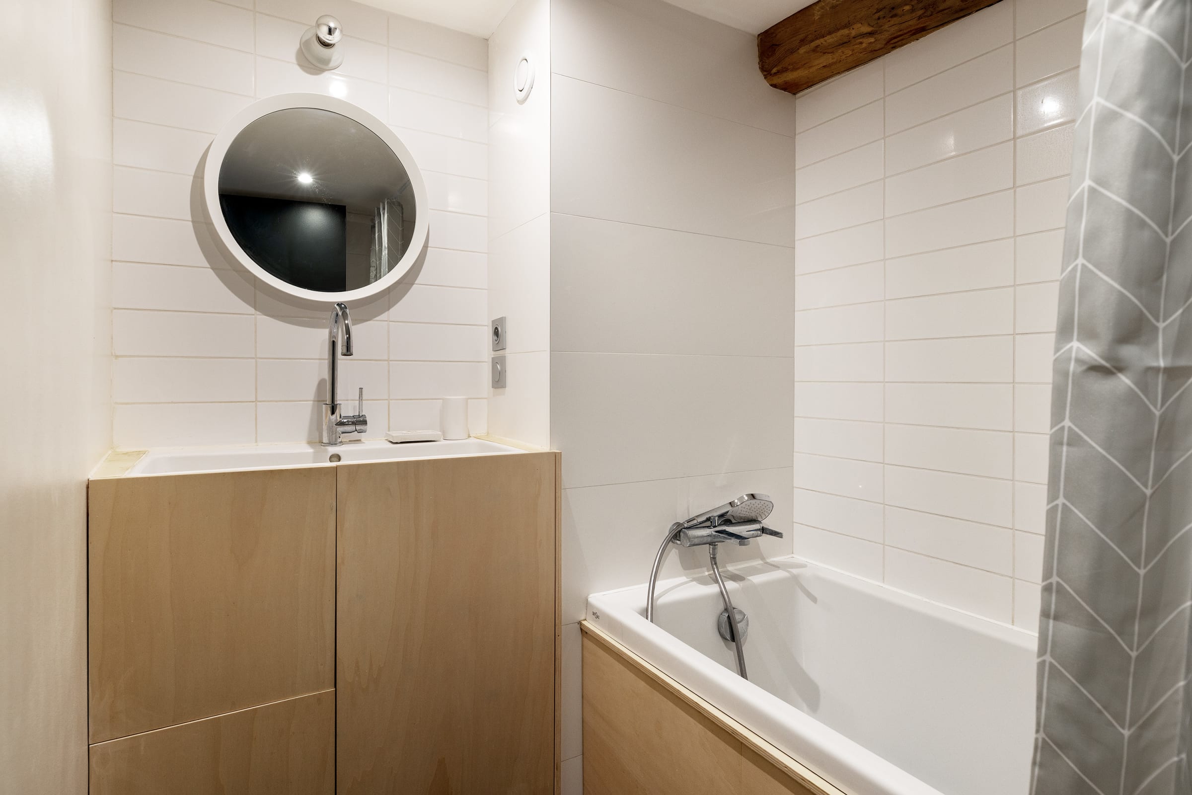 - une salle de bain avec baignoire,