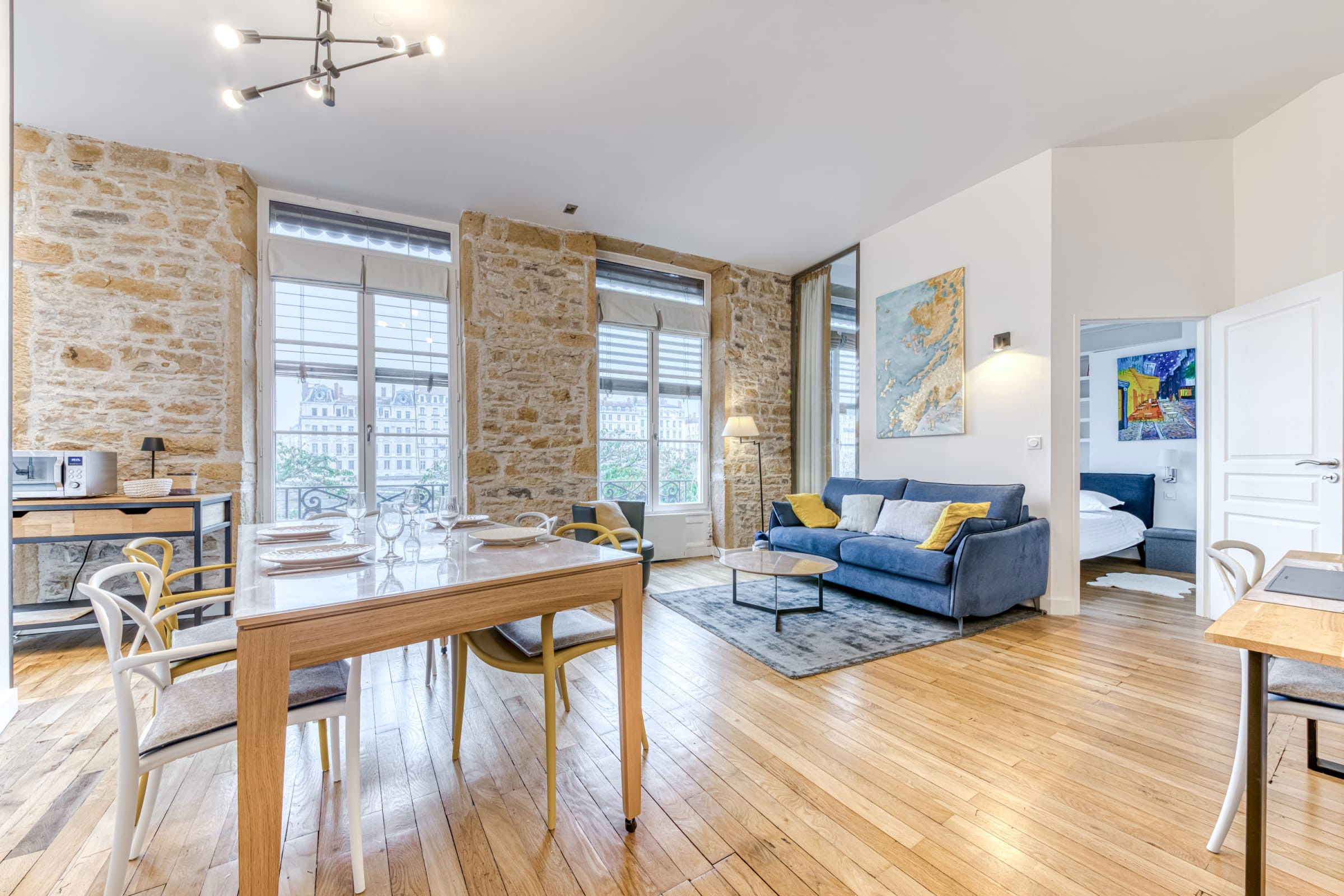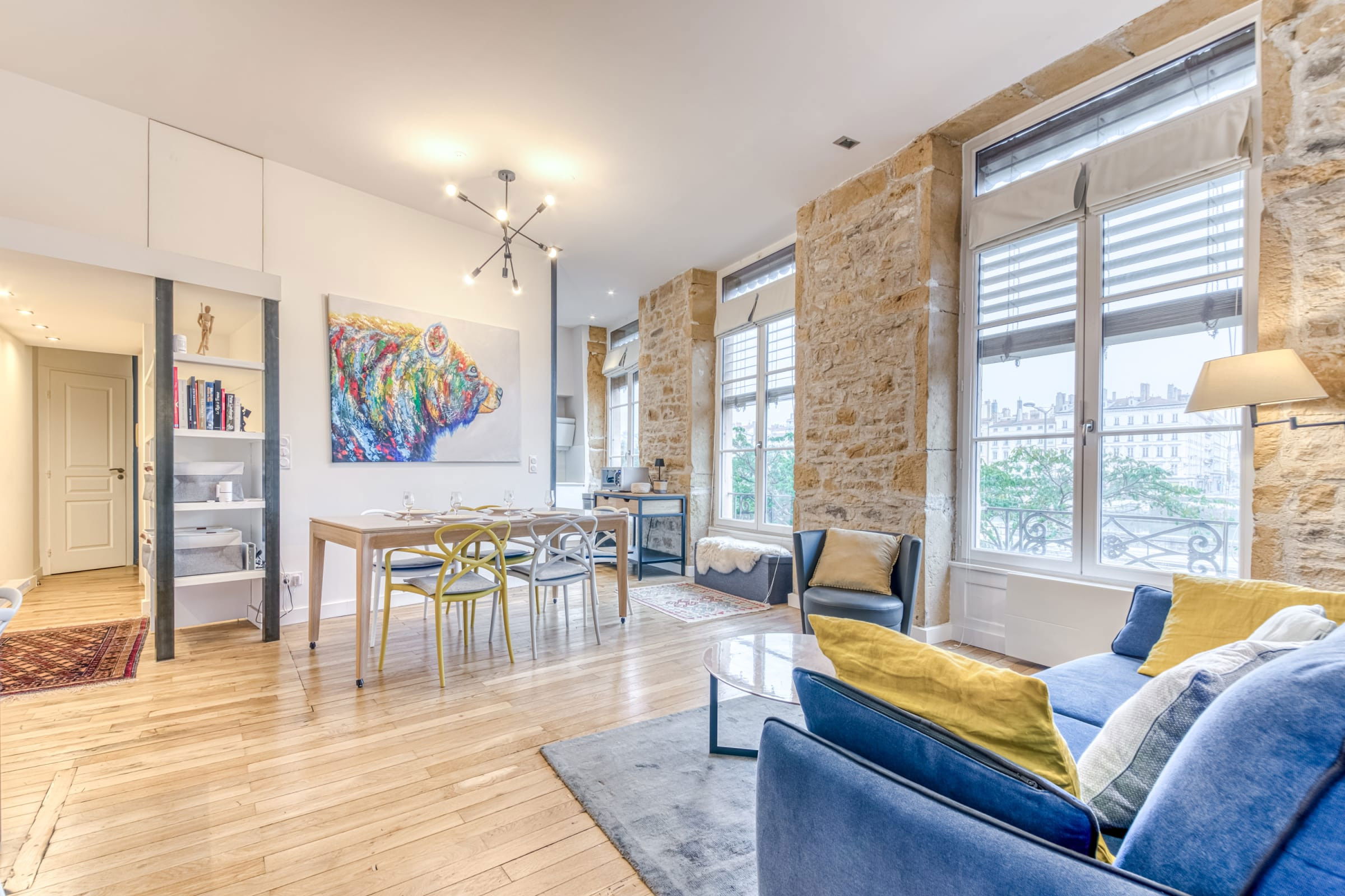 Vivez l'expérience unique du centre historique de Lyon en séjournant dans cet appartement récemment rénové de 52 m², situé au 1er étage sans ascenseur, parfait pour deux personnes.