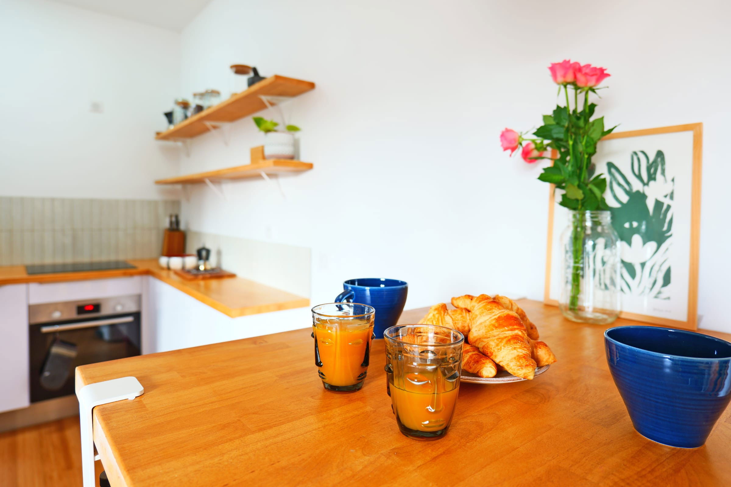 - une cuisine moderne, parfaitement équipée (machine à café, grille-pain, bouilloire, four, plaques de cuisson, réfrigérateur, congélateur),