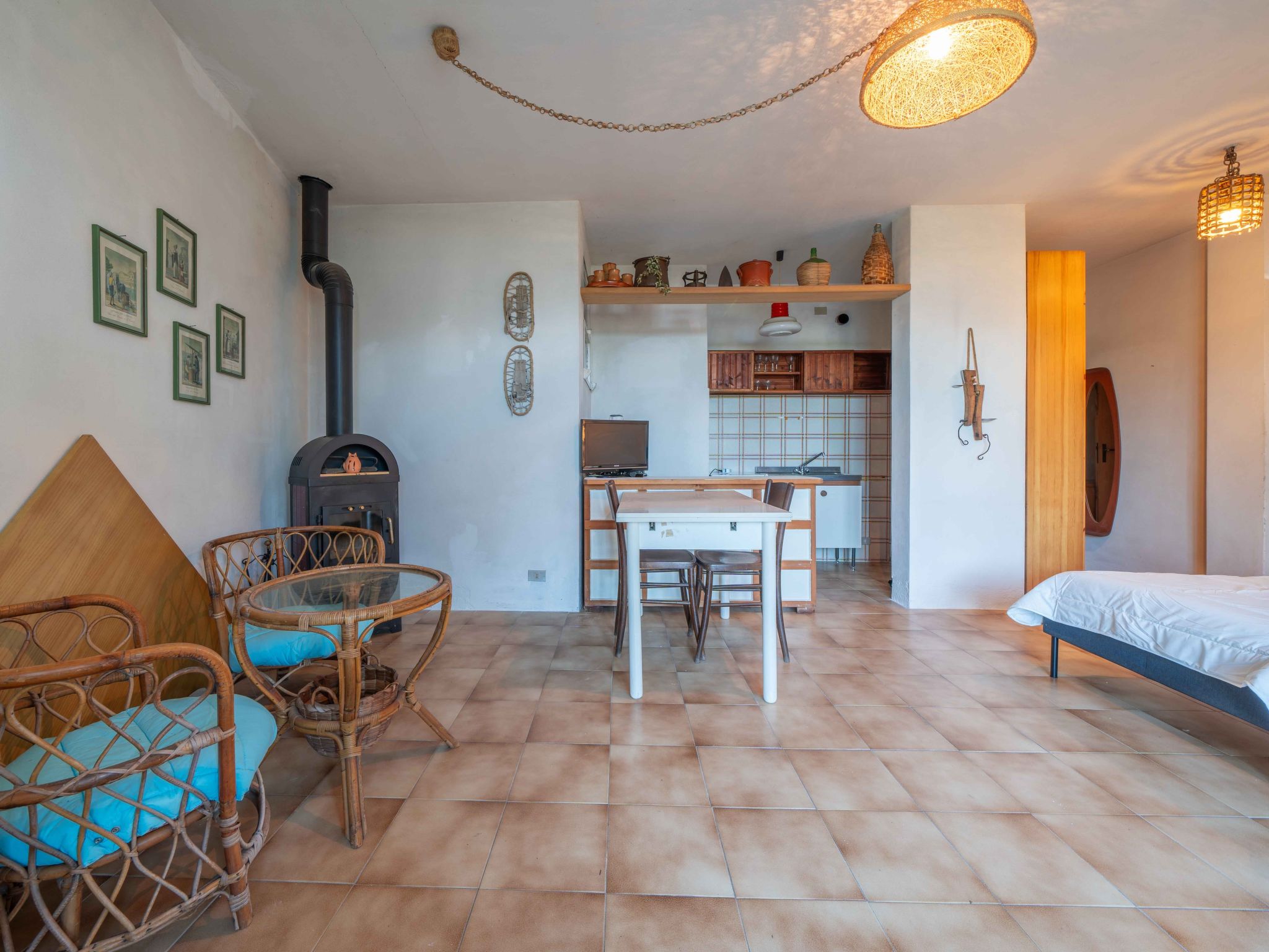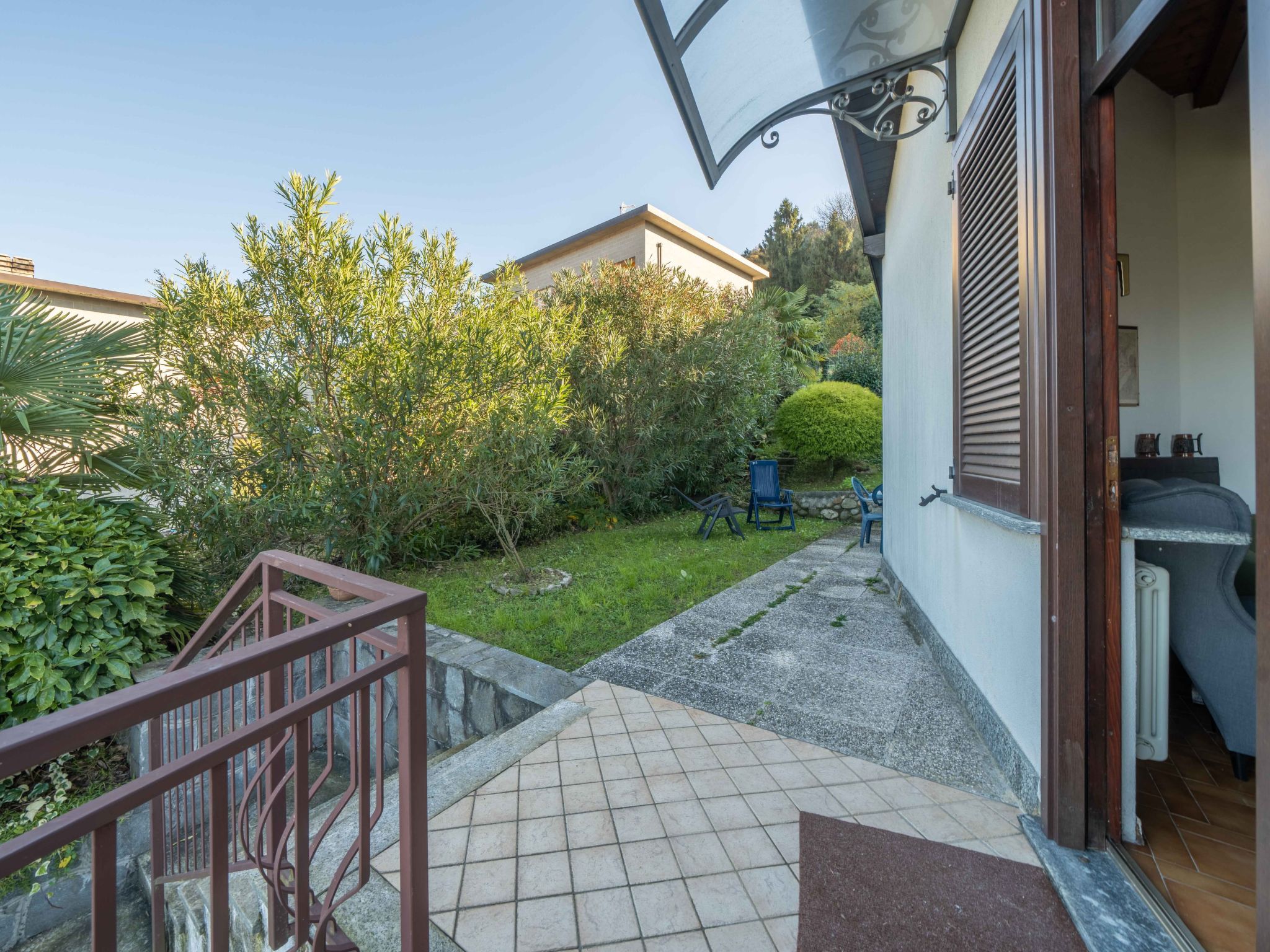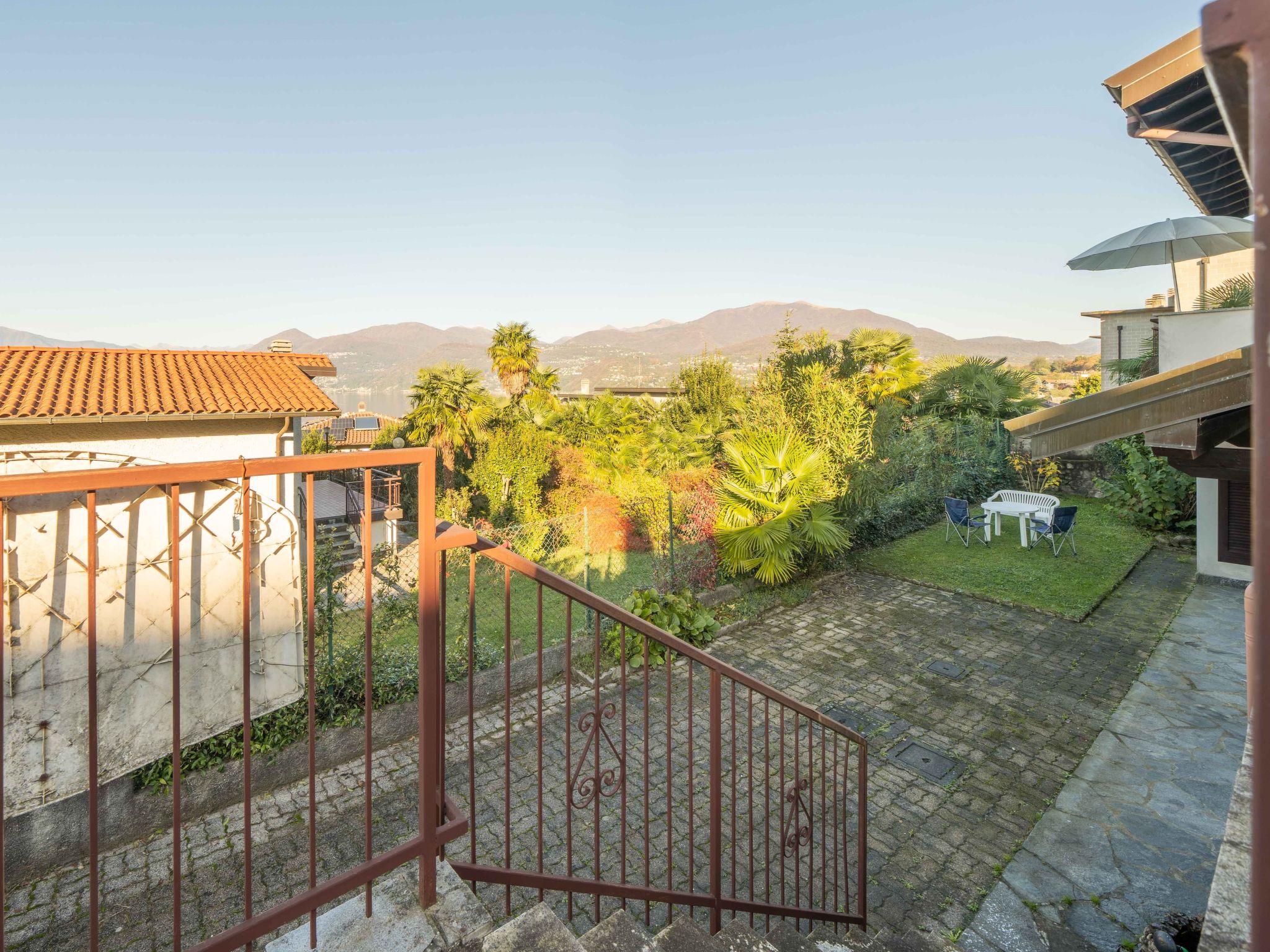 Maison individuelle. Dans le haut de la station de Germignaga, à 1 km du centre, situation surélevée, à 1.5 km du lac, dans une impasse. A usage privé: jardin sur plusieurs niveaux (clôturé), place de parking, garage individuel. Supermarché 2 km, restaurant 1.5 km, bar 1.5 km, boulangerie 1.5 km, arrêt de bus 400 m, plage de gazon 1.6 km. Veuillez noter: voiture recommandée. La remise des clés a lieu à l’agence Holiday Rentals de Porto Valtravaglia, 7 km.