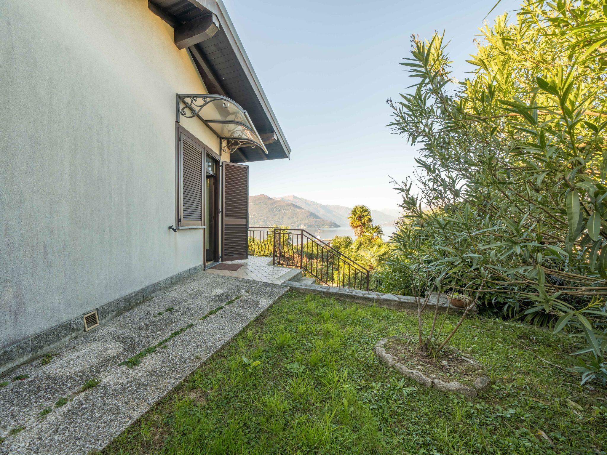 "Marzia", maison 4 pièces 100 m2 sur 2 niveaux au 1er étage. Aménagement fonctionnel: séjour/salle à manger avec TV. Sortie sur le balcon. 1 chambre avec 2 lits. Sortie sur le jardin. 1 chambre double. Cuisine ouverte (4 plaques de cuisson, four, lave-vaisselle, cafetière électrique). Douche/bidet/WC. À l'étage inférieur: (escalier extérieur) séjour avec 2 lits. Douche/bidet/WC. Pas de chauffage. Balcon, terrasse. Meubles de terrasse. Belle vue sur le lac et les montagnes. A disposition: lave-linge, sèche-cheveux. Internet (Connexion WIFI, gratuit). Maximum 2 animaux/ chiens autorisés. Pas de liaison interne entre les étages. IT012076C28DTOKFSJ