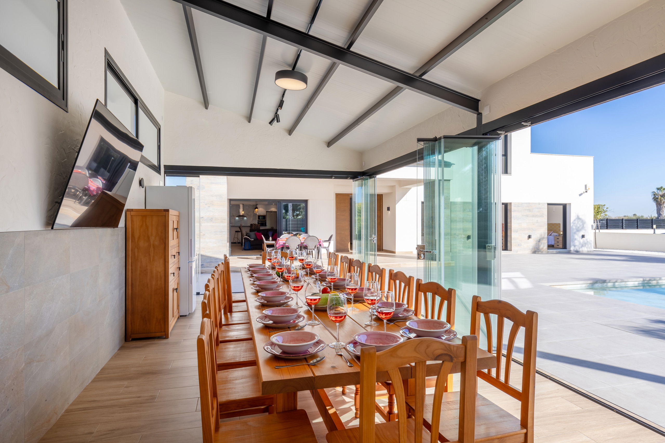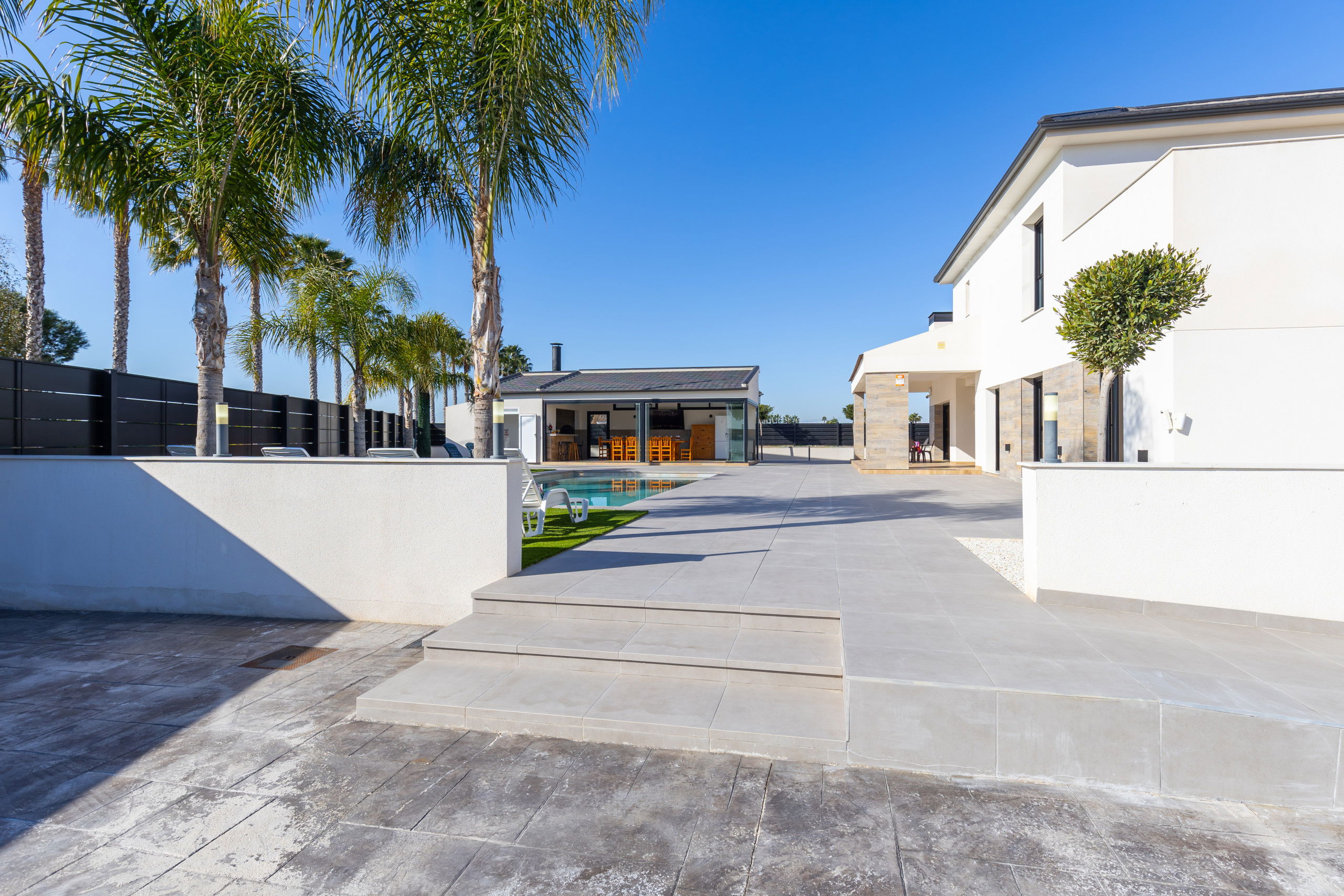 Equipée de climatisation dans toute la maison, elle garantit un séjour confortable toute l'année. De plus, il dispose d'un grand garage ouvert au sein de la propriété avec une capacité de 10 voitures.
