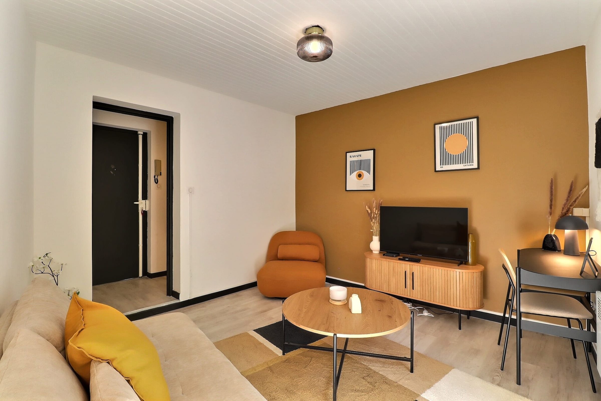 Dès votre entrée dans Le Van Gogh, vous serez enveloppé par une atmosphère chaleureuse et apaisante. Le salon lumineux, entièrement climatisé et agrémenté d’un canapé moelleux et d’un fauteuil cosy, invite à la contemplation, tout comme l’espace bureau qui vous permettra de laisser libre cours à votre inspiration. La chambre, élégamment décorée, équipée d’un lit double confortable et également climatisée, promet des nuits paisibles après vos journées de découverte.