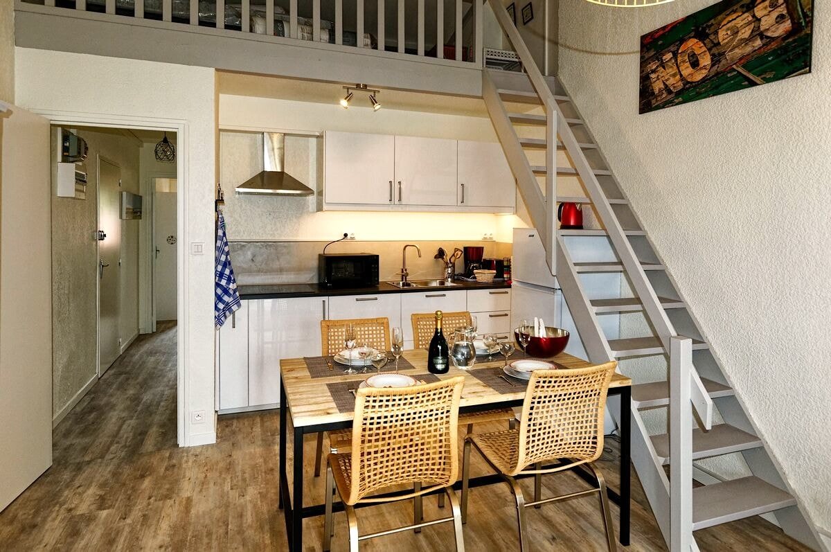 Côté nuit, profitez d’une chambre avec un lit double et d’une mezzanine avec deux lits simples, idéale pour des adolescents (plafond bas- moins d'un mètre). Une salle de bain et des WC indépendants complètent cet espace fonctionnel.