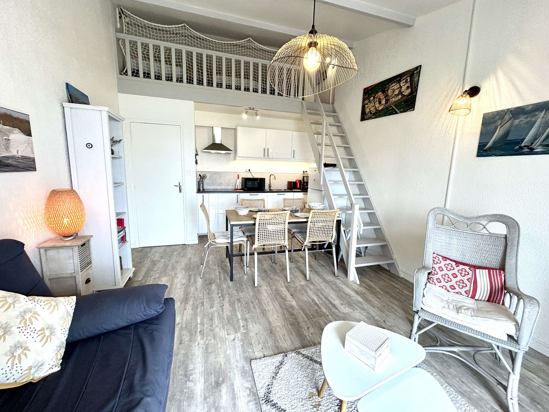 À seulement 300 mètres d’une magnifique plage accessible par , cet appartement entièrement rénové et décoré avec soin vous promet un séjour confortable et convivial. Situé au 2ème étage d’une résidence, il se compose d’une entrée avec placard, d’un salon-séjour lumineux équipé d’une télévision et d’un canapé convertible Bultex, ainsi que d’une cuisine ouverte et entièrement aménagée.
