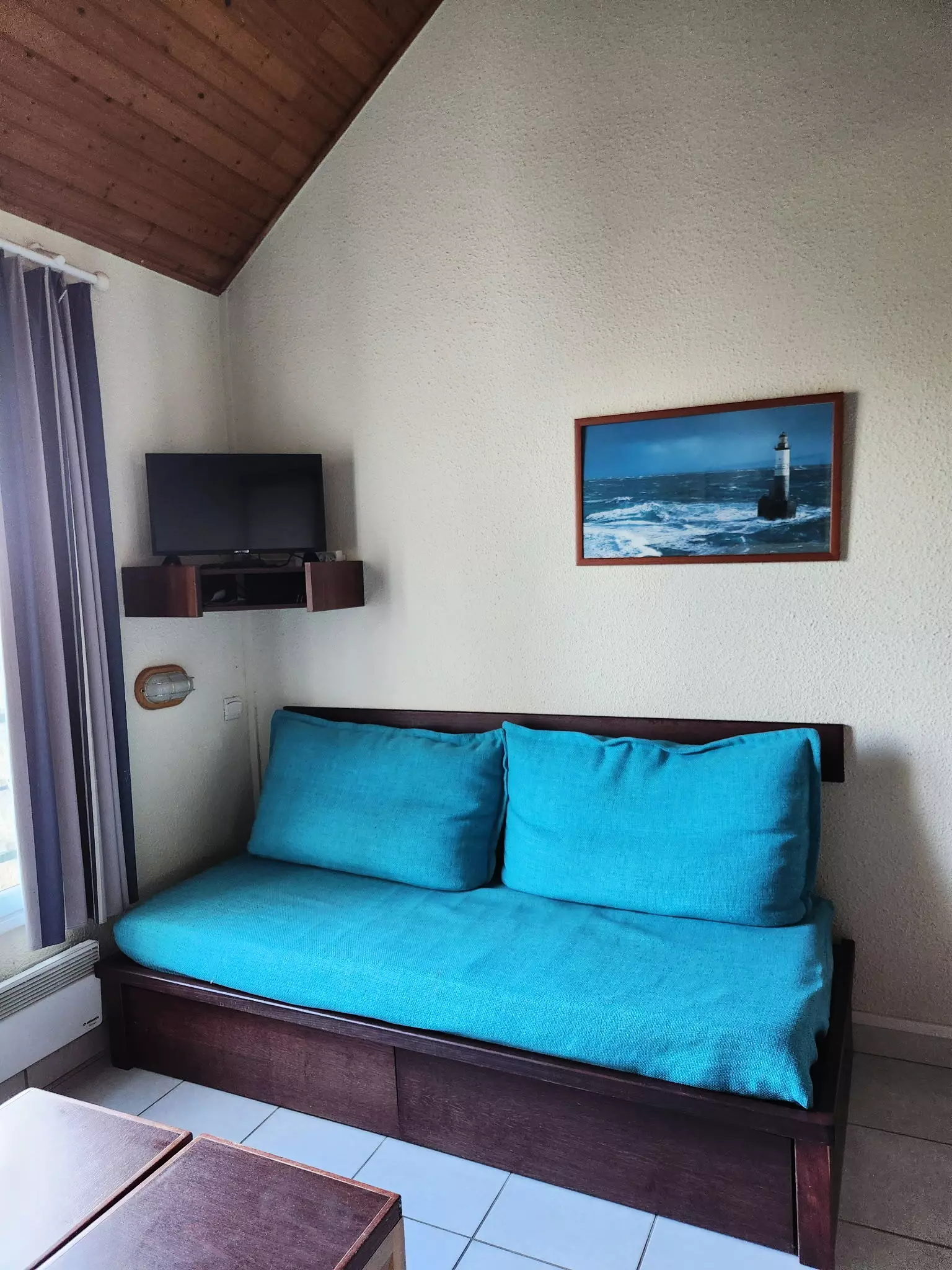 Équipements séjour : 2 lits-banquettes dont 1 lit gigogne (recommandé pour les enfants) et 1 coin cabine avec porte avec 1 lit simple. Côté repas : une table avec 1 banc et 3 chaises.