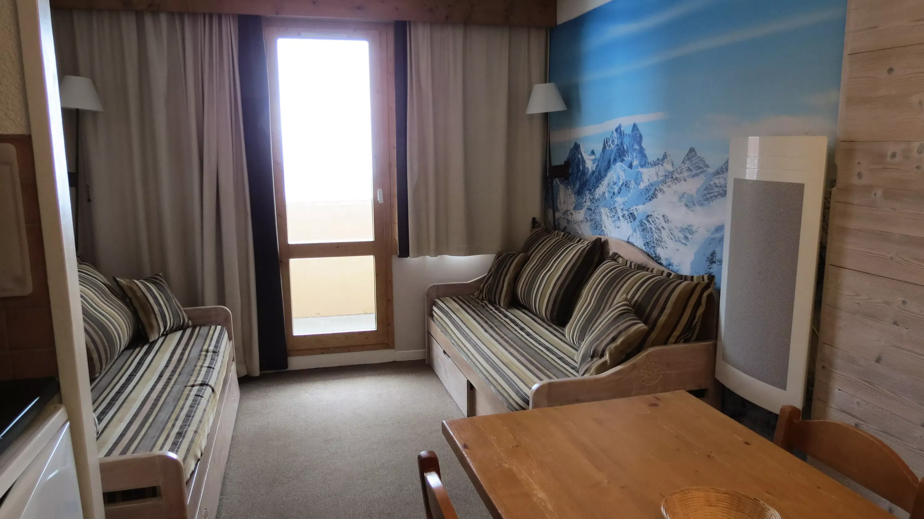 Les atouts de ce logement : skis aux pieds, 300m commerces, balcon aménagé, vue montagne, exposé plein sud, rangements, TV...