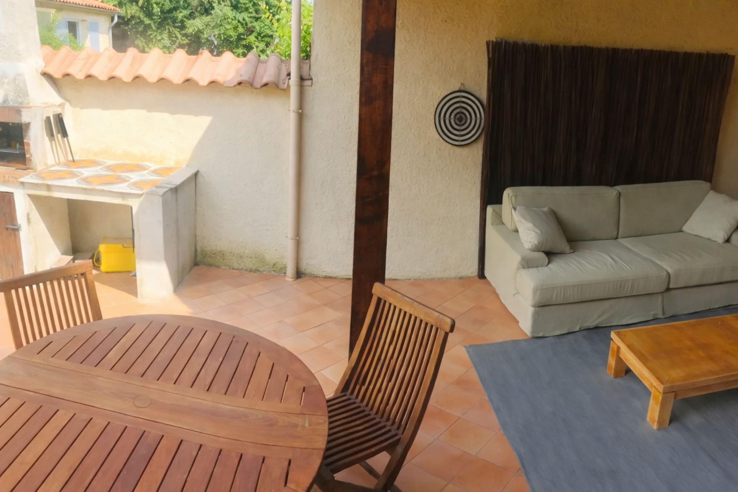 Le terrain est clôturé, permettant aux enfants et aux animaux de compagnie de jouer en toute sécurité. Les chiens sont d'ailleurs les bienvenus dans cette villa.