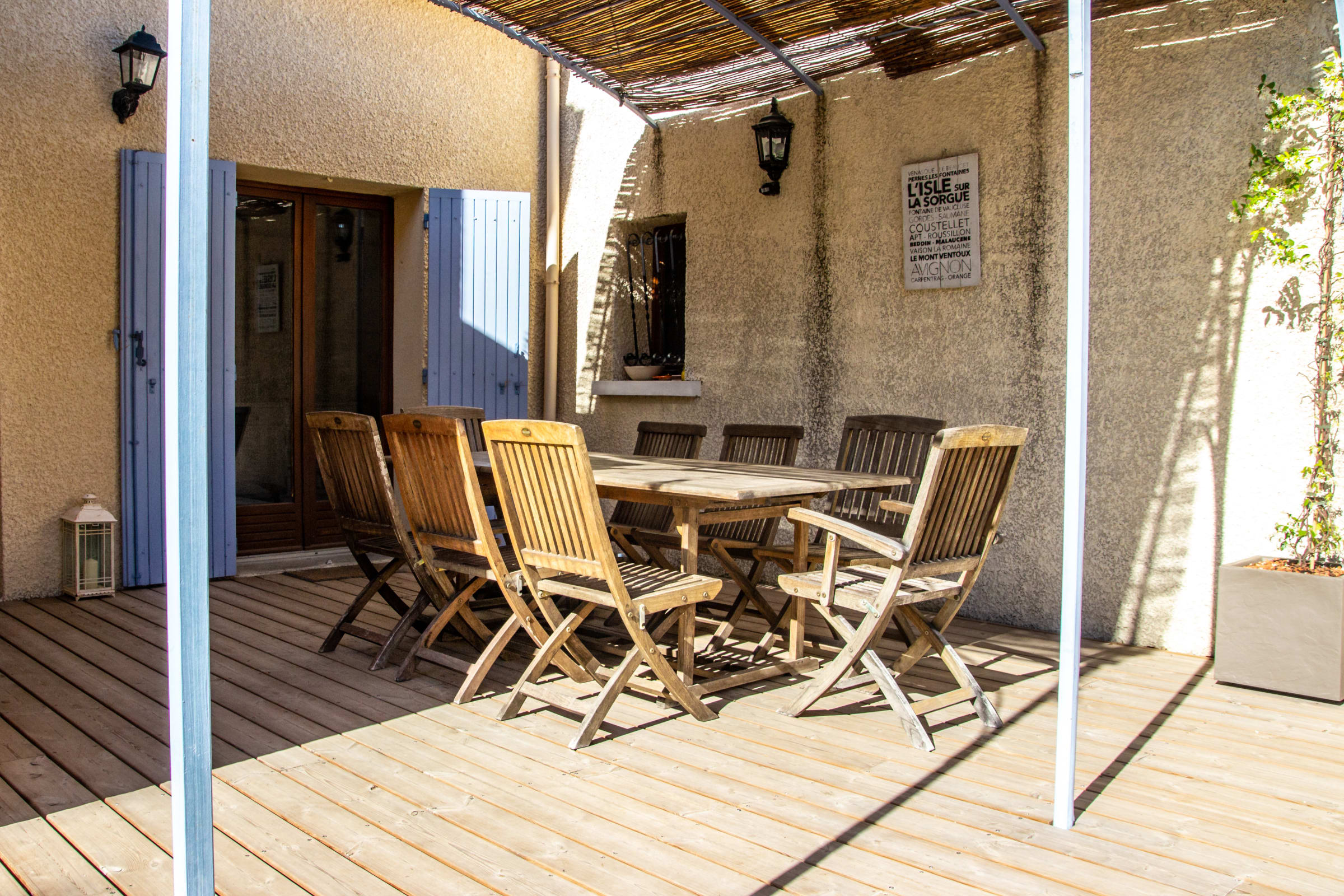 Située à seulement 10 minutes de Fontaine-de-Vaucluse et à proximité des villages perchés du Luberon tels que Gordes, Ménerbes et Roussillon, cette villa est également proche des Alpilles, de Saint-Rémy et des Baux.