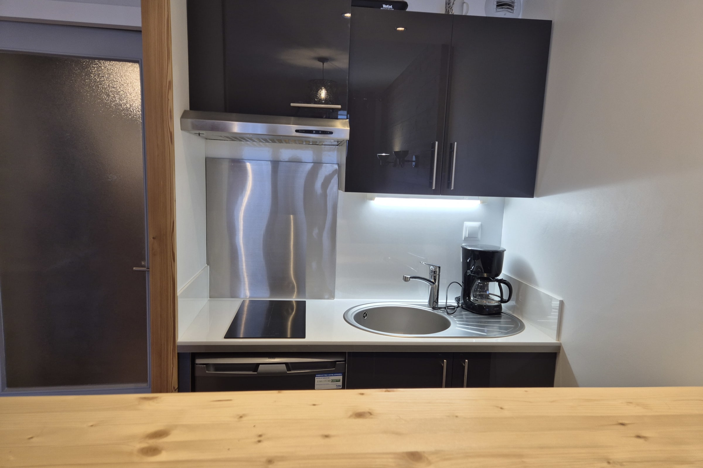 L'appartement a récemment été rénové pour vous offrir un séjour confortable et agréable. La cuisine fonctionnelle est équipée d'une plaque de cuisson, four-micro onde, refrigerateur ainsi que de tous les ustensiles et vaisselle de base dont vous aurez besoin. Dans le séjour, vous trouverez un canapé clic clac pour 2 personnes avec un matelas confortable , ainsi qu'un coin nuit avec un lit superposé pour 2 personnes supplémentaires. La salle de bains et les toilettes sont séparées.