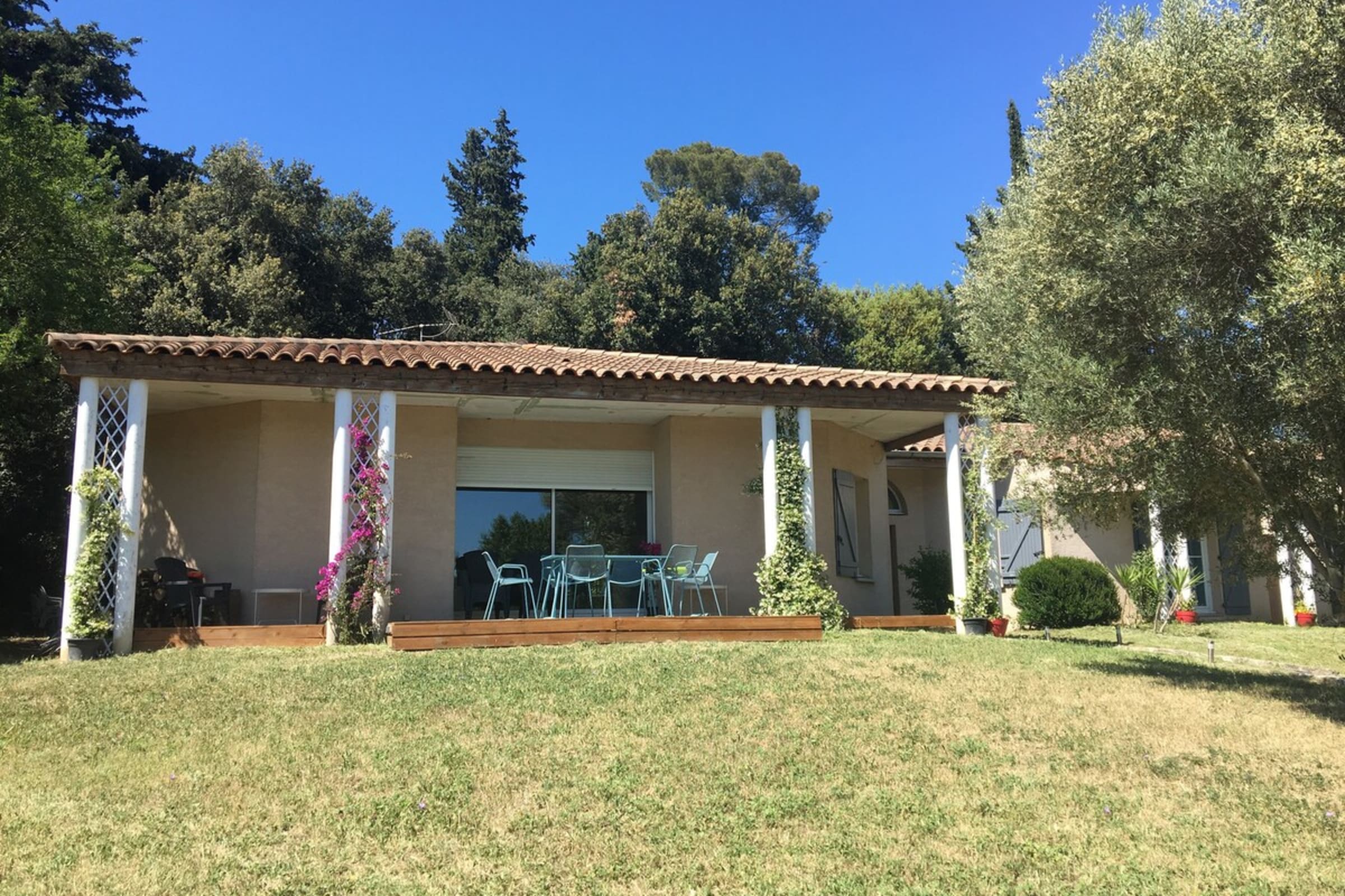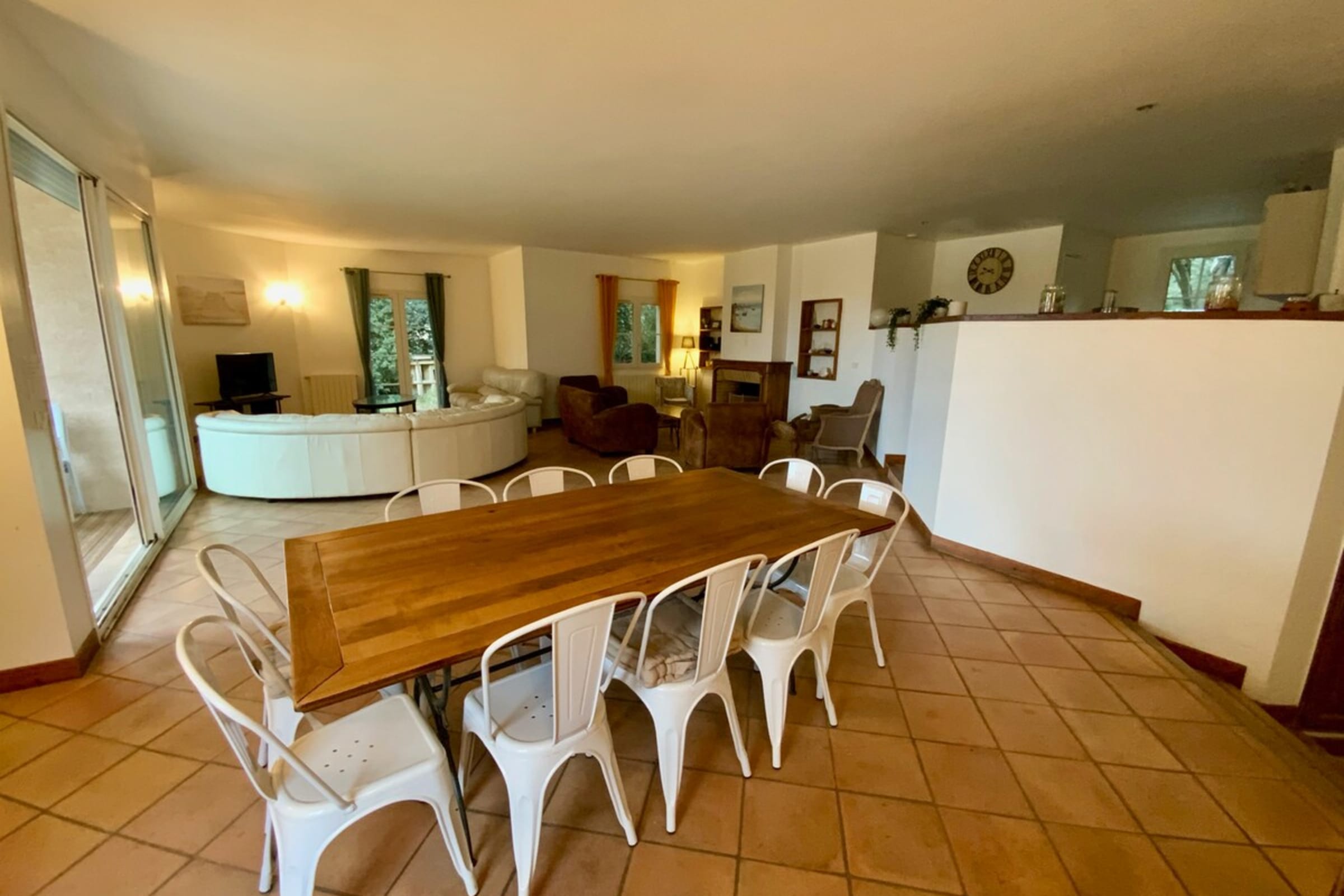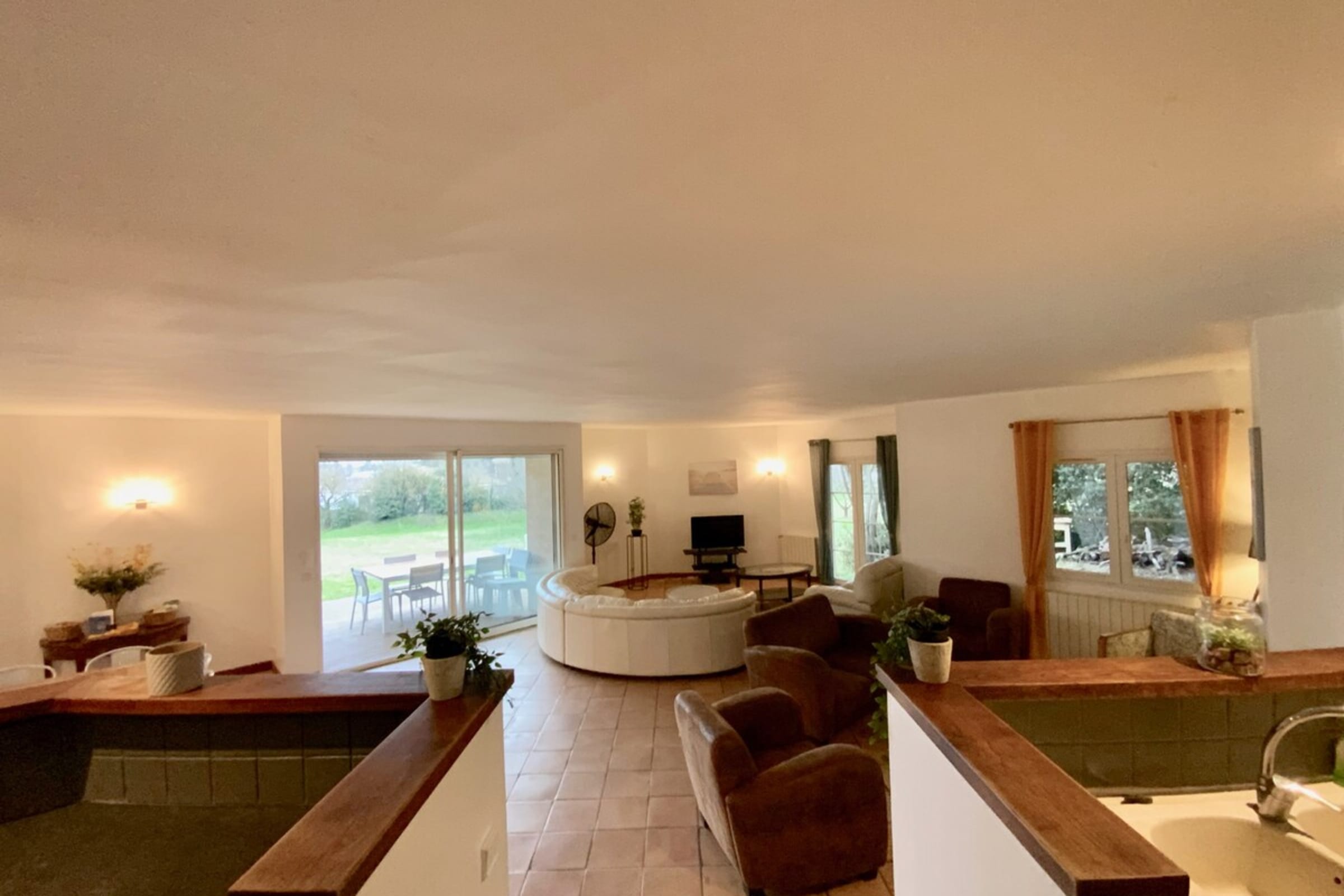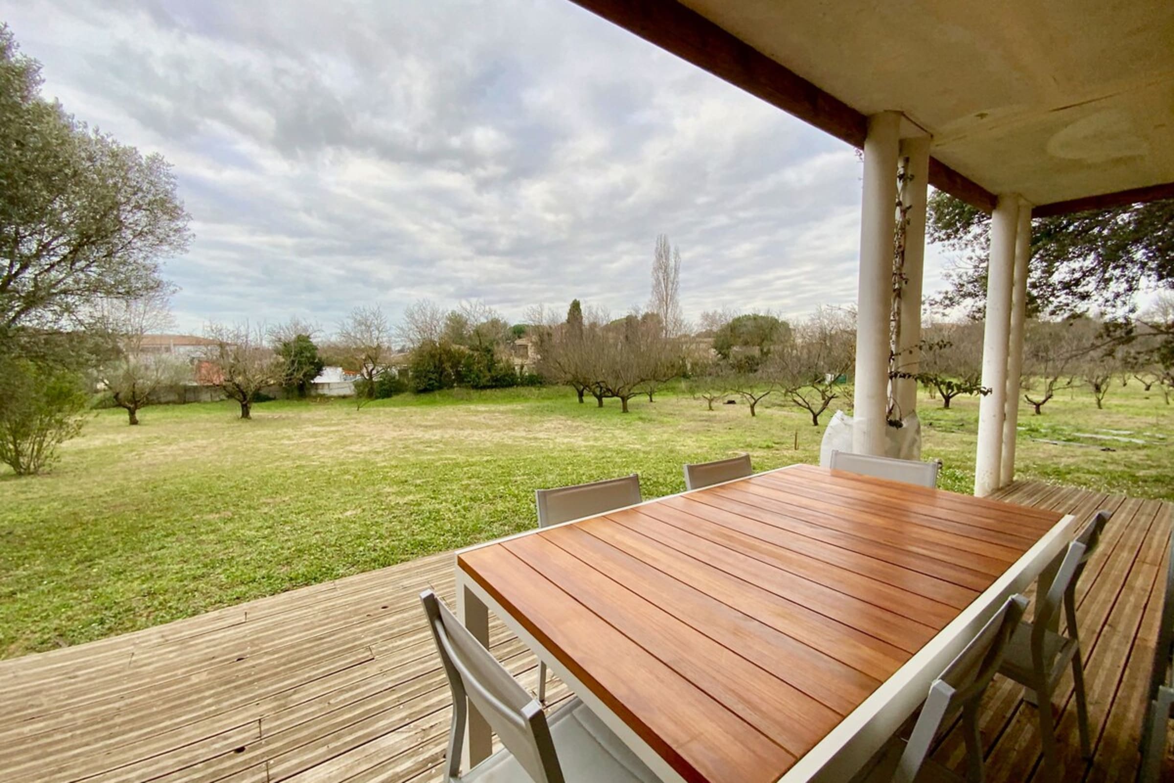 Villa de plain pied de 190m2 avec 4 chambres, piscine, terrain de pétanque et filet de badminton.