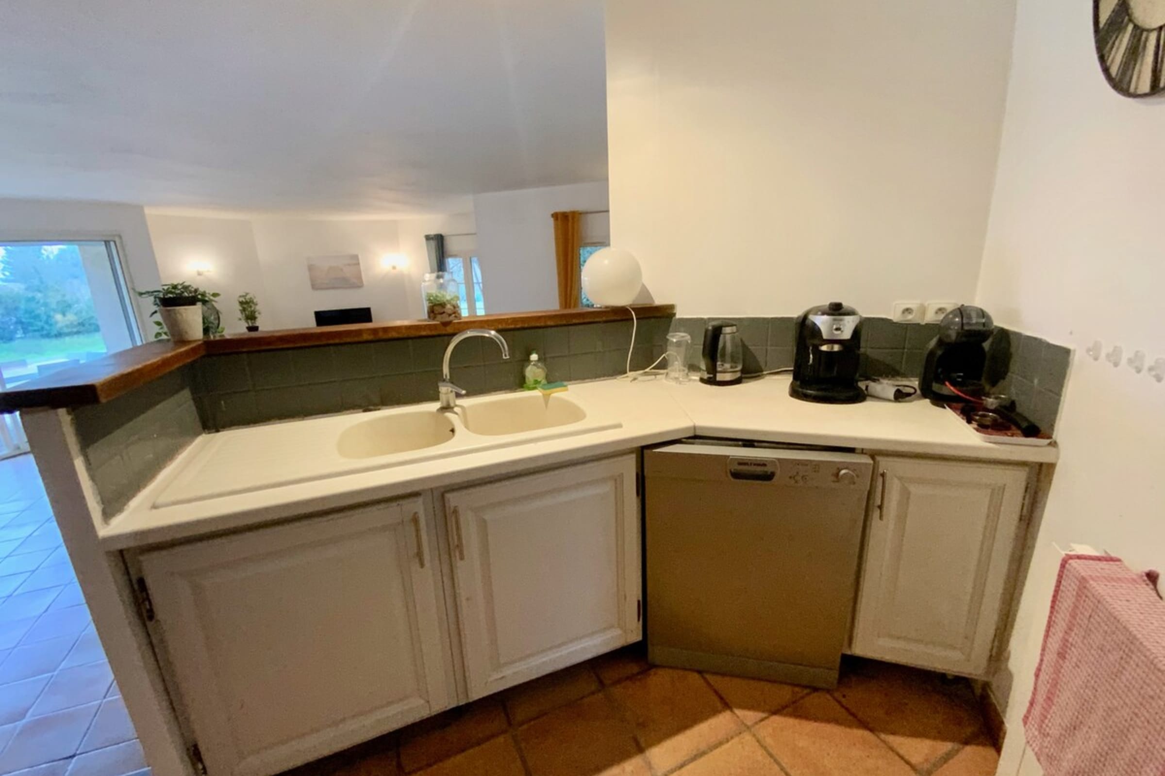 D'une grande pièce de vie ouverte et lumineuse, comprenant l'espace salon avec nombreux canapé et fauteils, TV connecté, une cuisine entièrement équipée (bouilloire, machine à café De Longhi et Dolce Gusto, plaque de cuisson à gaz, frigo américain, mixeur, four, lave vaisselle , micro-ondes …)