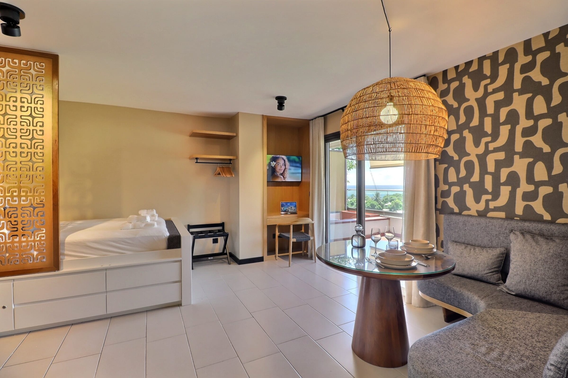 Que vous soyez de passage pour affaires ou en voyage à la découverte de la Polynésie, la Mahana Suite est le parfait équilibre entre confort urbain, modernité et douceur insulaire.