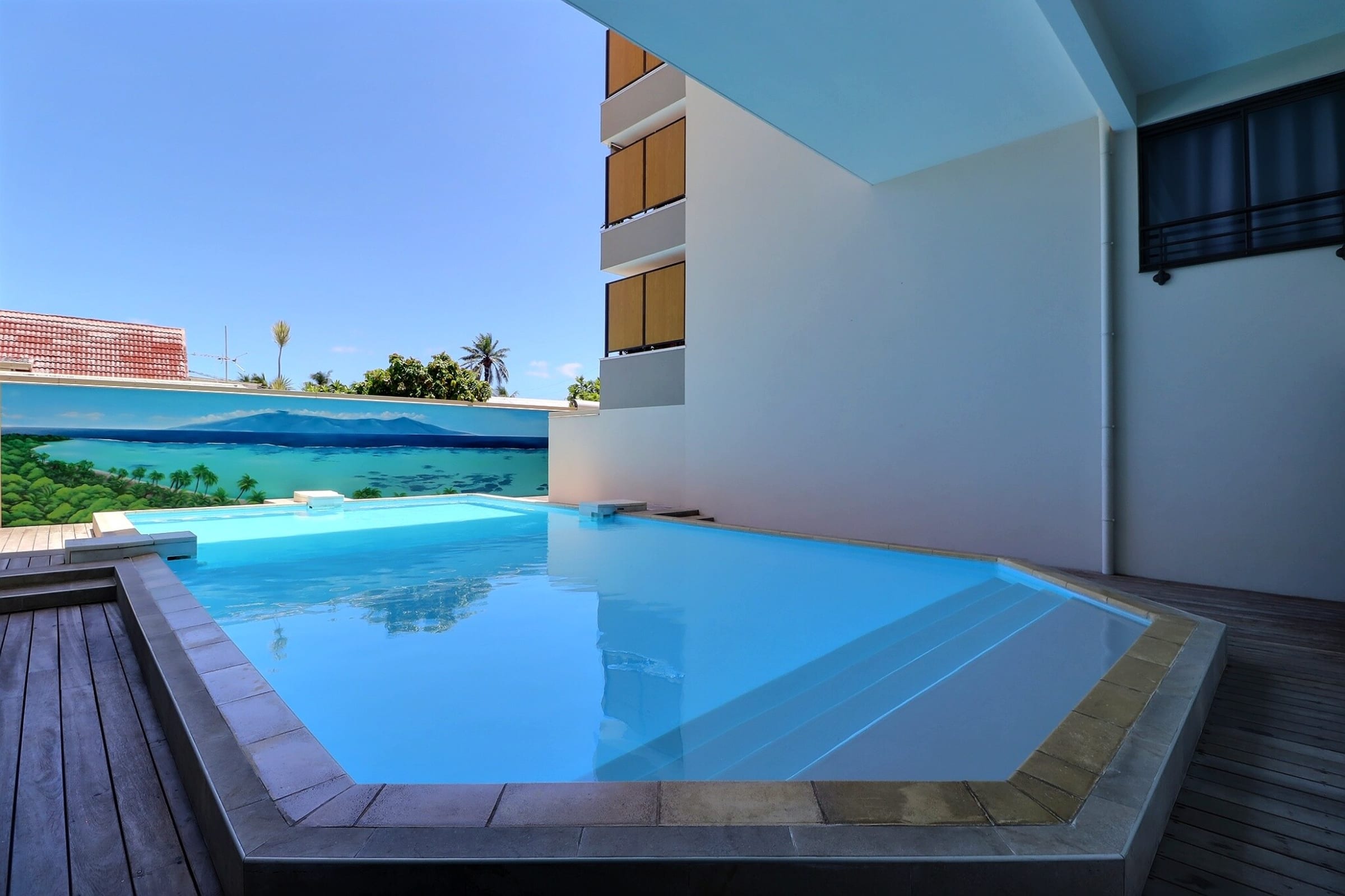 En séjournant à la Mahana Suite, vous bénéficiez également de tous les services de la résidence Lagon Bleu : une piscine pour se rafraîchir sous le soleil de Tahiti, et une salle de sport pour vos moments d’énergie.