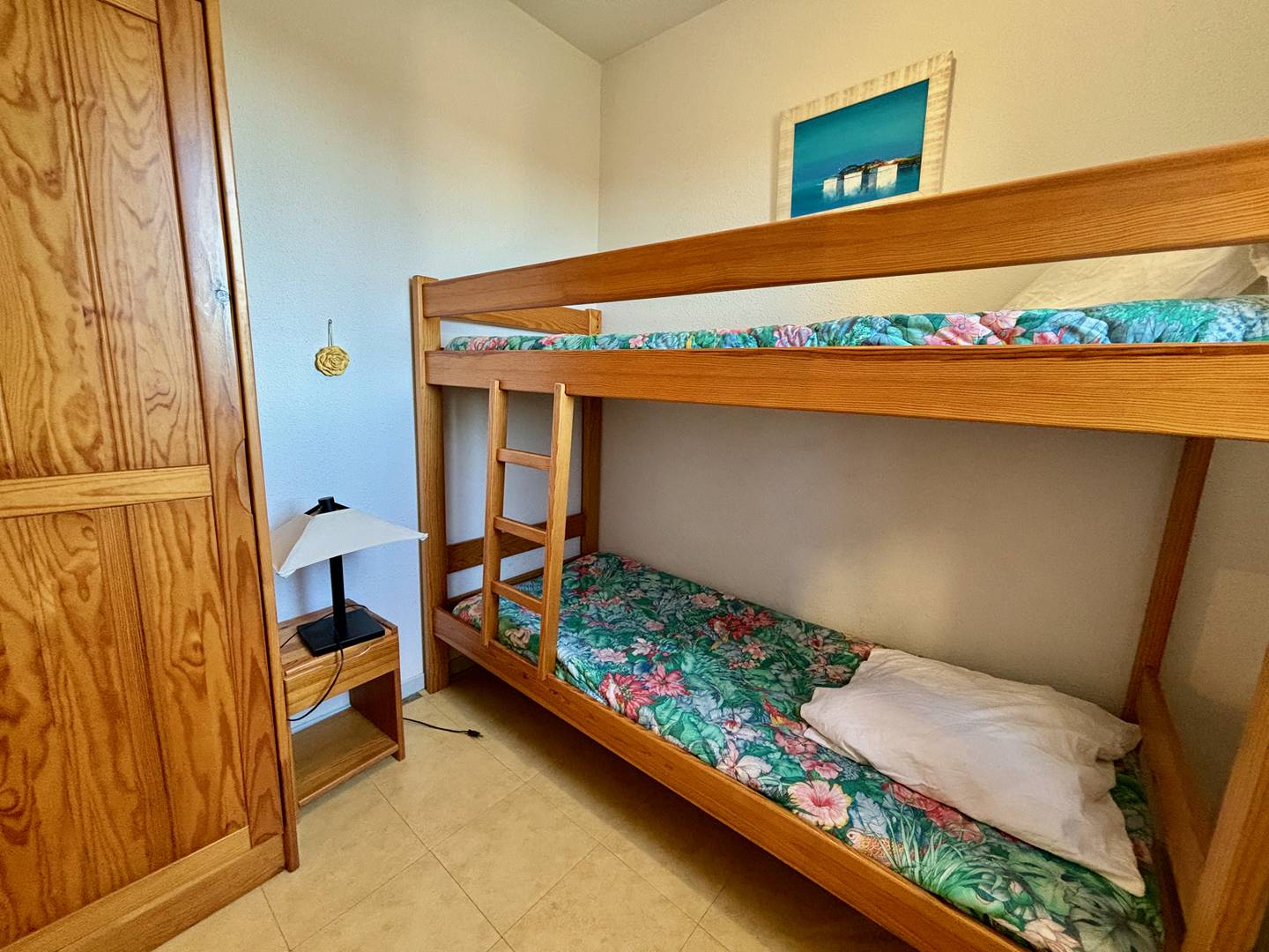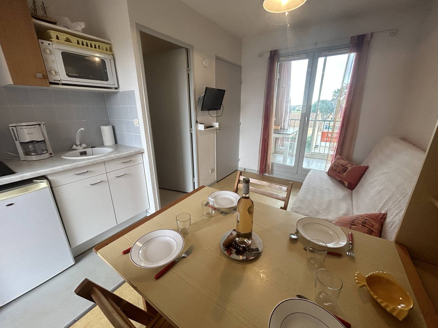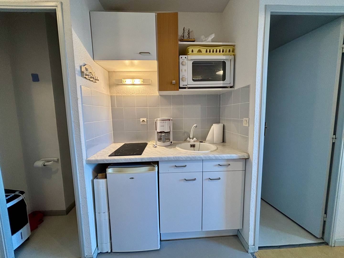 Le logement : Cet appartement de vacances situé au 2ème étage vous propose une loggia exposée Sud comprend un séjour avec un canapé convertible 140x190 ouvrant sur la loggia, d'un coin cuisine équipé avec un four, cafetière à filtre , d'une chambre avec un lit superposé de dimension 80X190, une salle de bain, un wc.