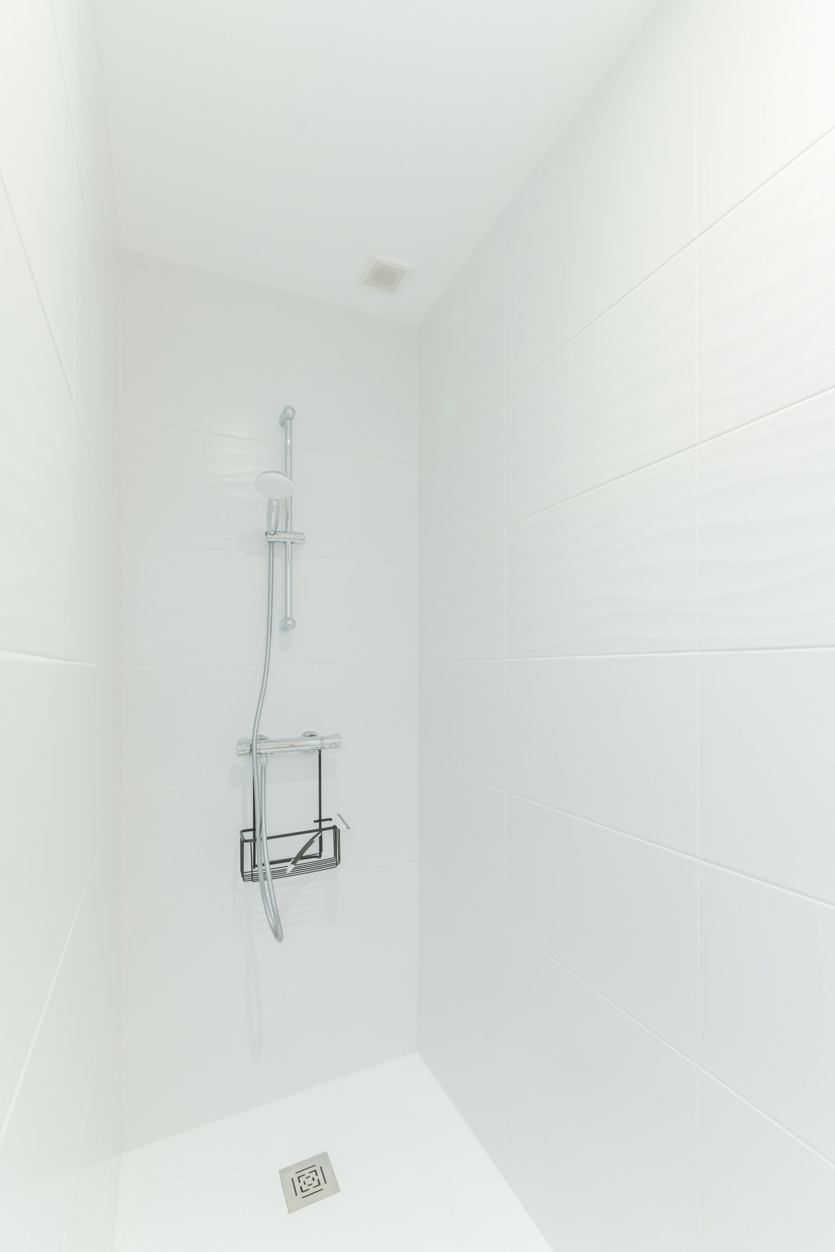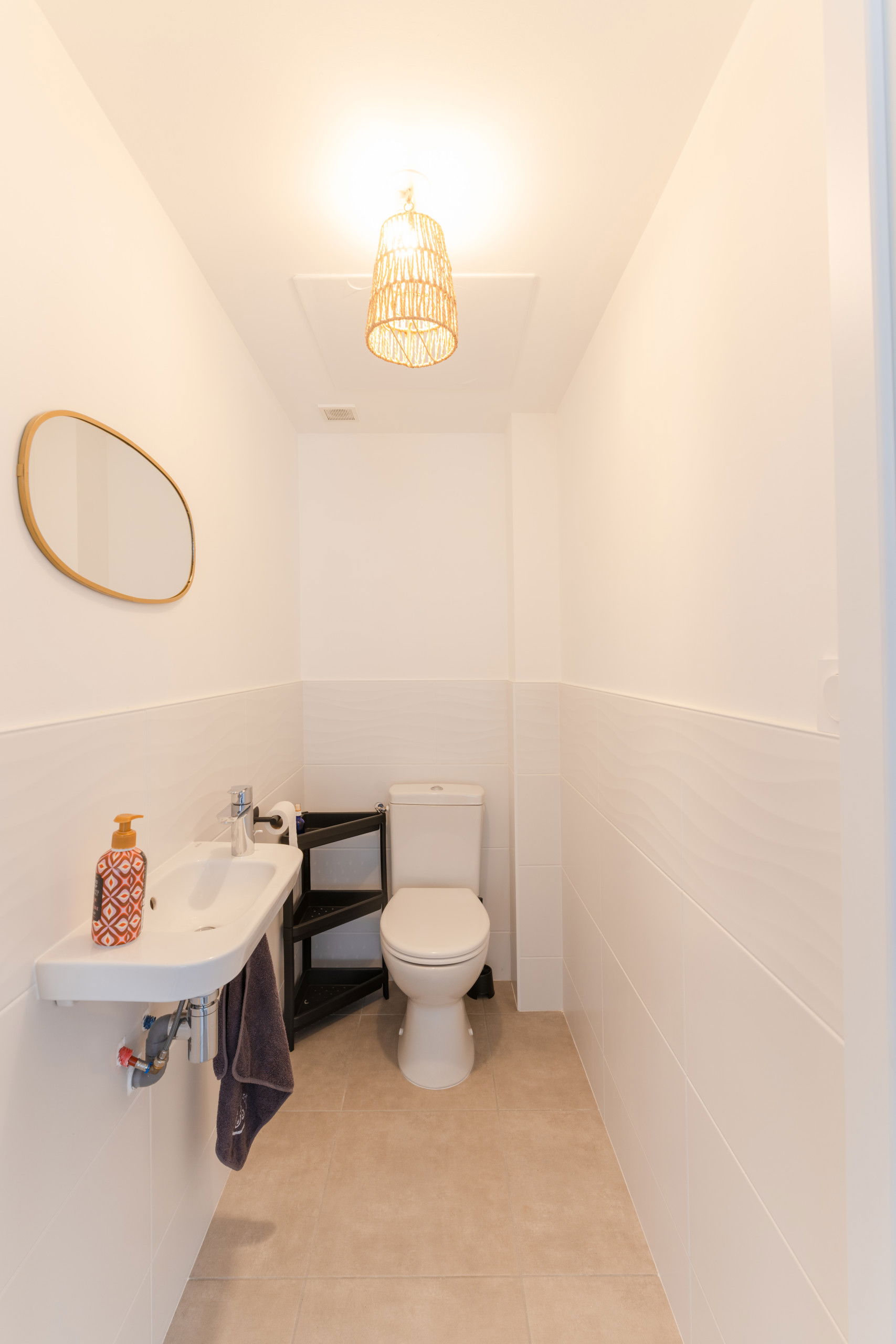 Une salle de bain avec douche et WC se trouve au bout du couloir. Des WC séparés se trouvent également à côté de la buanderie.
