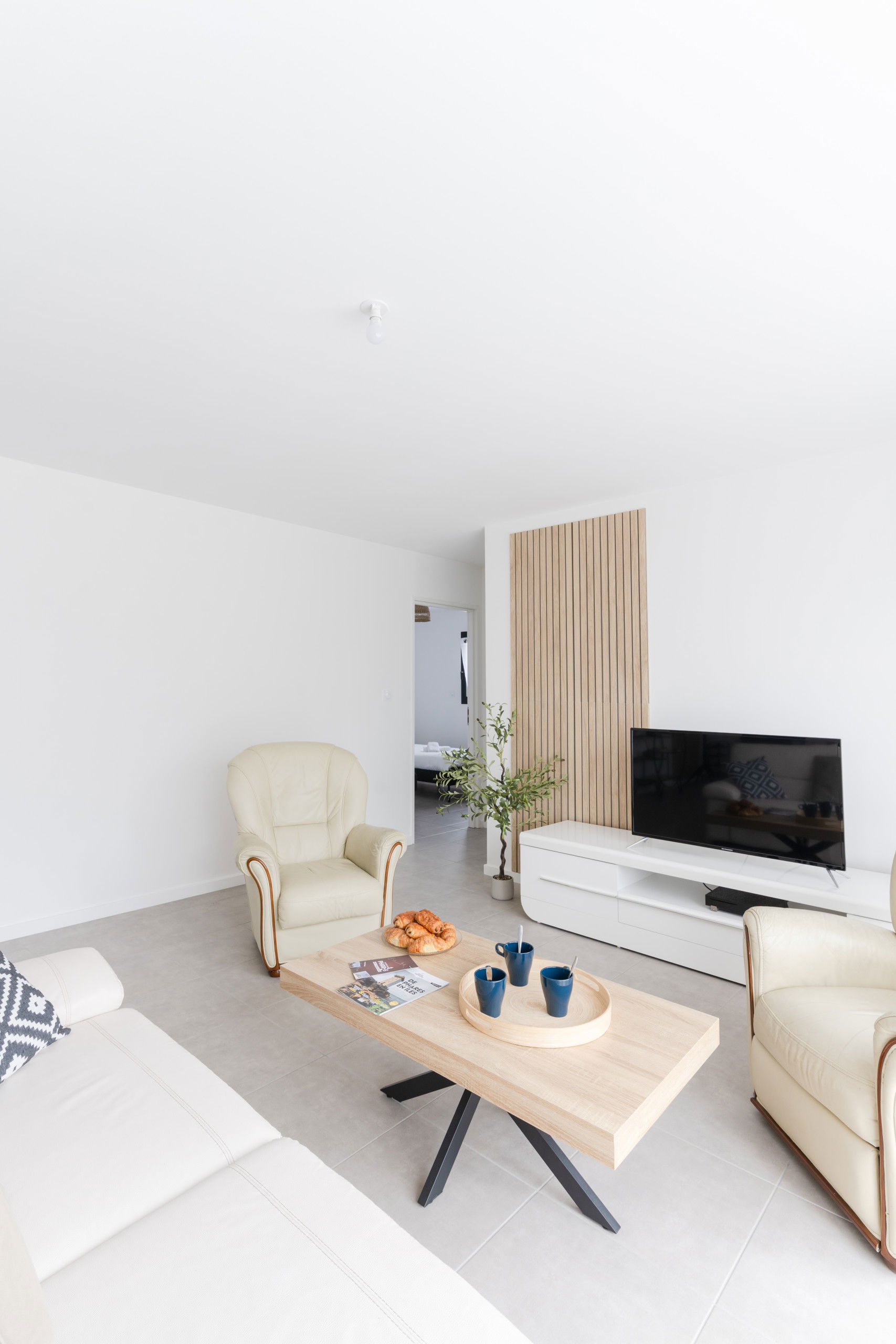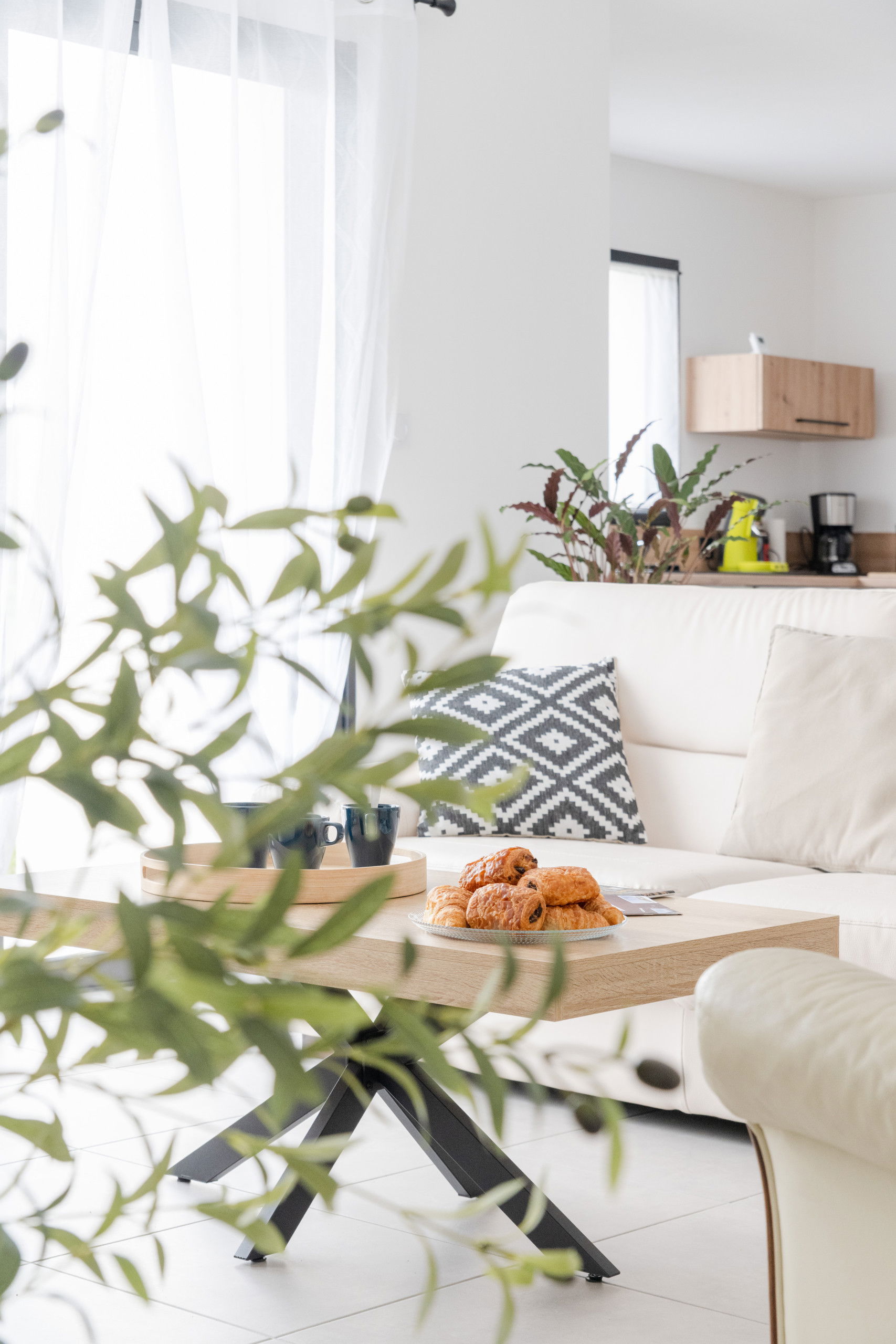 En entrant vous découvrirez une grande pièce de vie spacieuse et lumineuse. Vous y trouverez une belle cuisine américaine, idéale pour préparer de bons repas, ainsi qu'un salon séjour confortable.