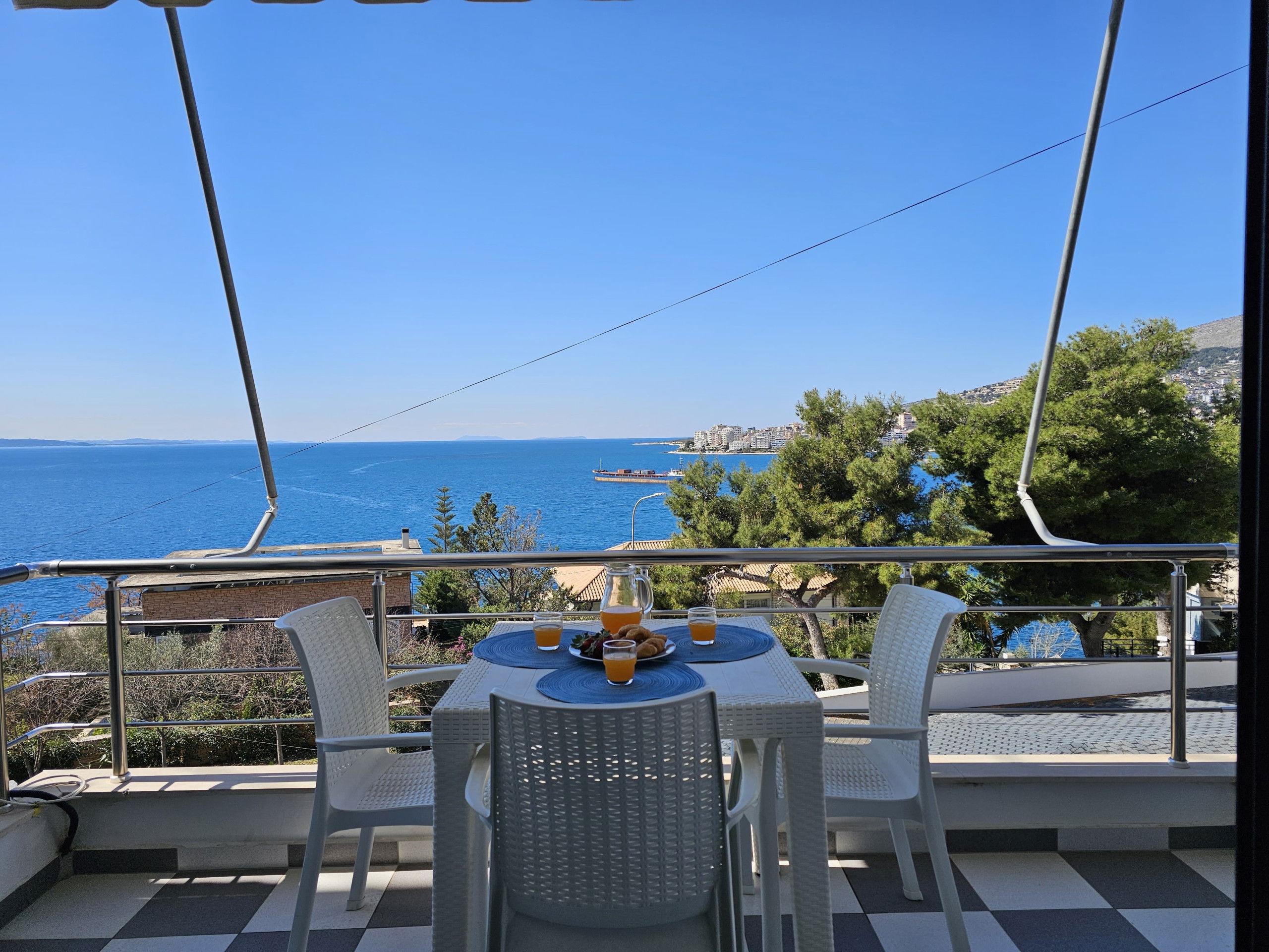 Le appartement à Sarande possède 1 chambre(s) et Capacité pour 3 personnes.