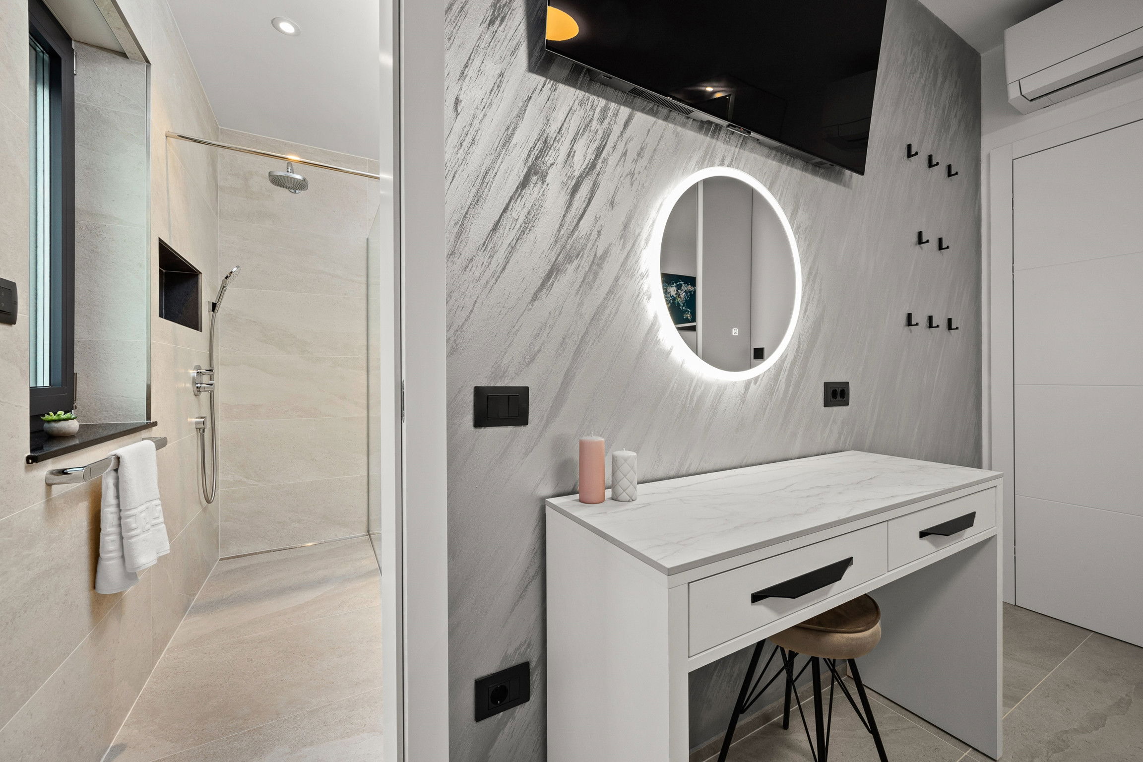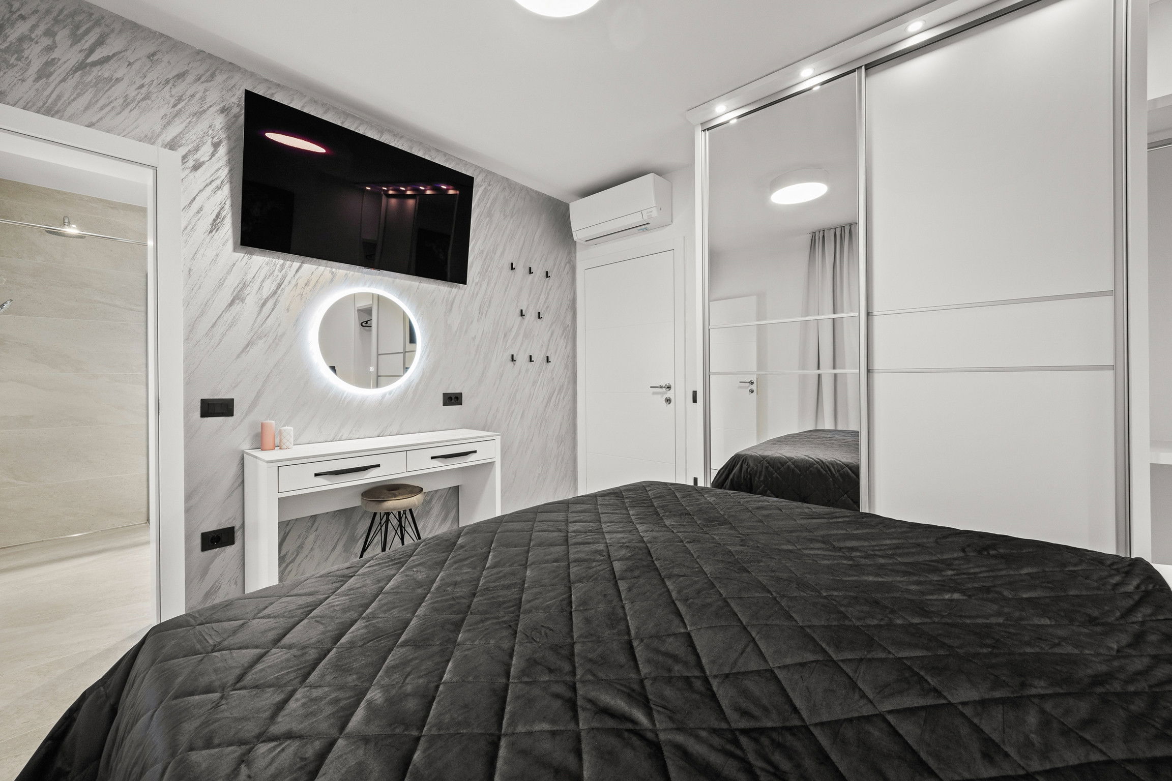 Elle dispose de jardin, mobilier de jardin, clôture, terrasse, lave-linge, sèche-linge, barbecue, fer à repasser, coffre-fort, accès internet (wifi), sèche-cheveux, balcon, zone pour les enfants, climatisation dans tout le logement, piscine privée, parking extérieur même bâtiment, 4 Télévisions, tv satellite.