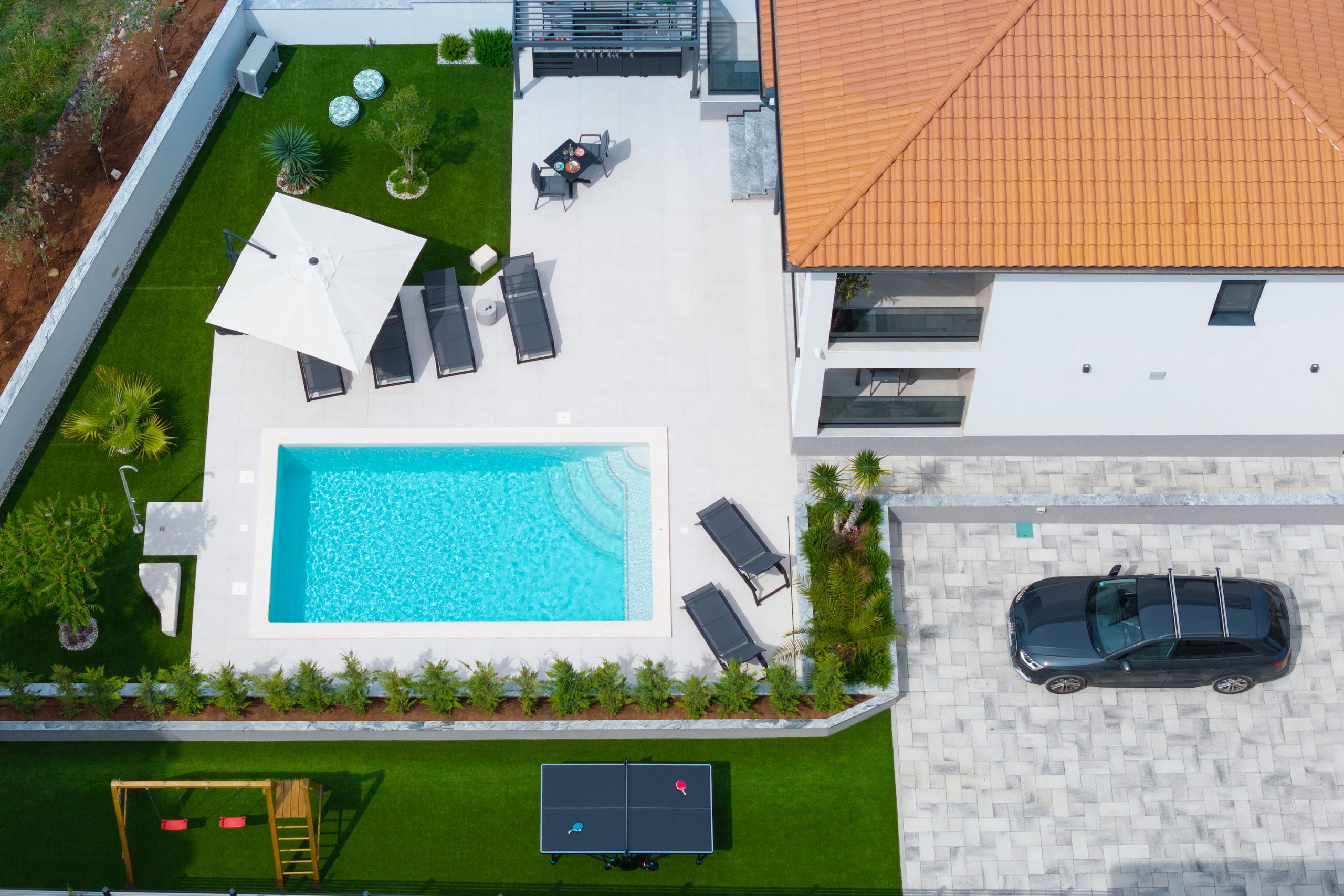 Logement de 135 m² joli et de construction récente, avec vue sur le jardin et la piscine.