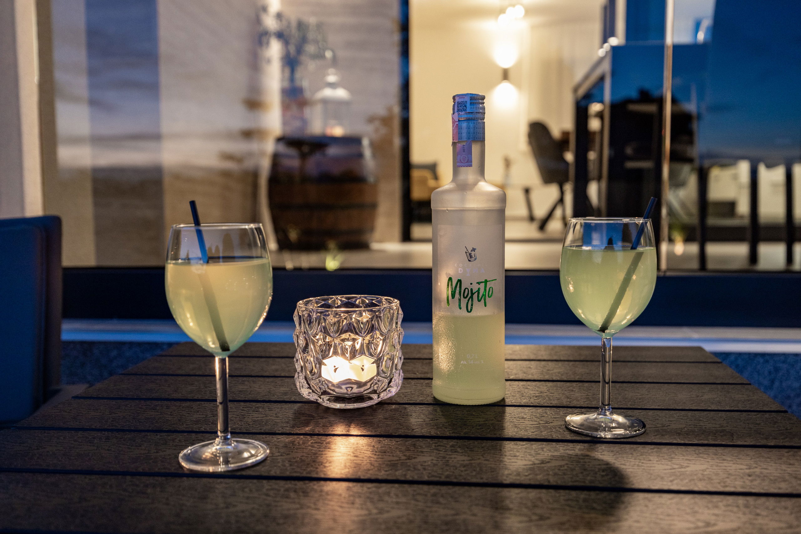 La cuisine américaine, à induction, est équipée avec réfrigérateur, micro-ondes, four, congélateur, lave-vaisselle, vaisselle/couverts, ustensiles/cuisine, cafetière, grille pain, bouilloire, cuisinière, equipement de cuisine, assiettes et bols.