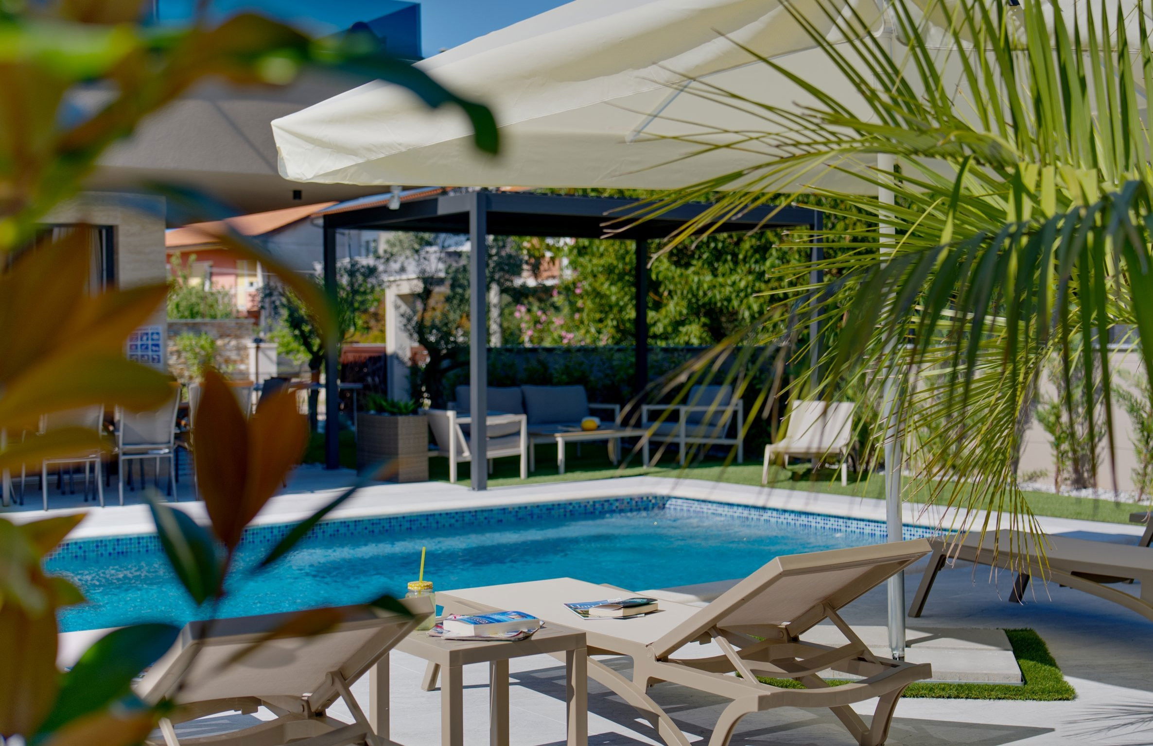 Logement de 200 m² joli et de construction récente, avec vue sur le jardin et la piscine.