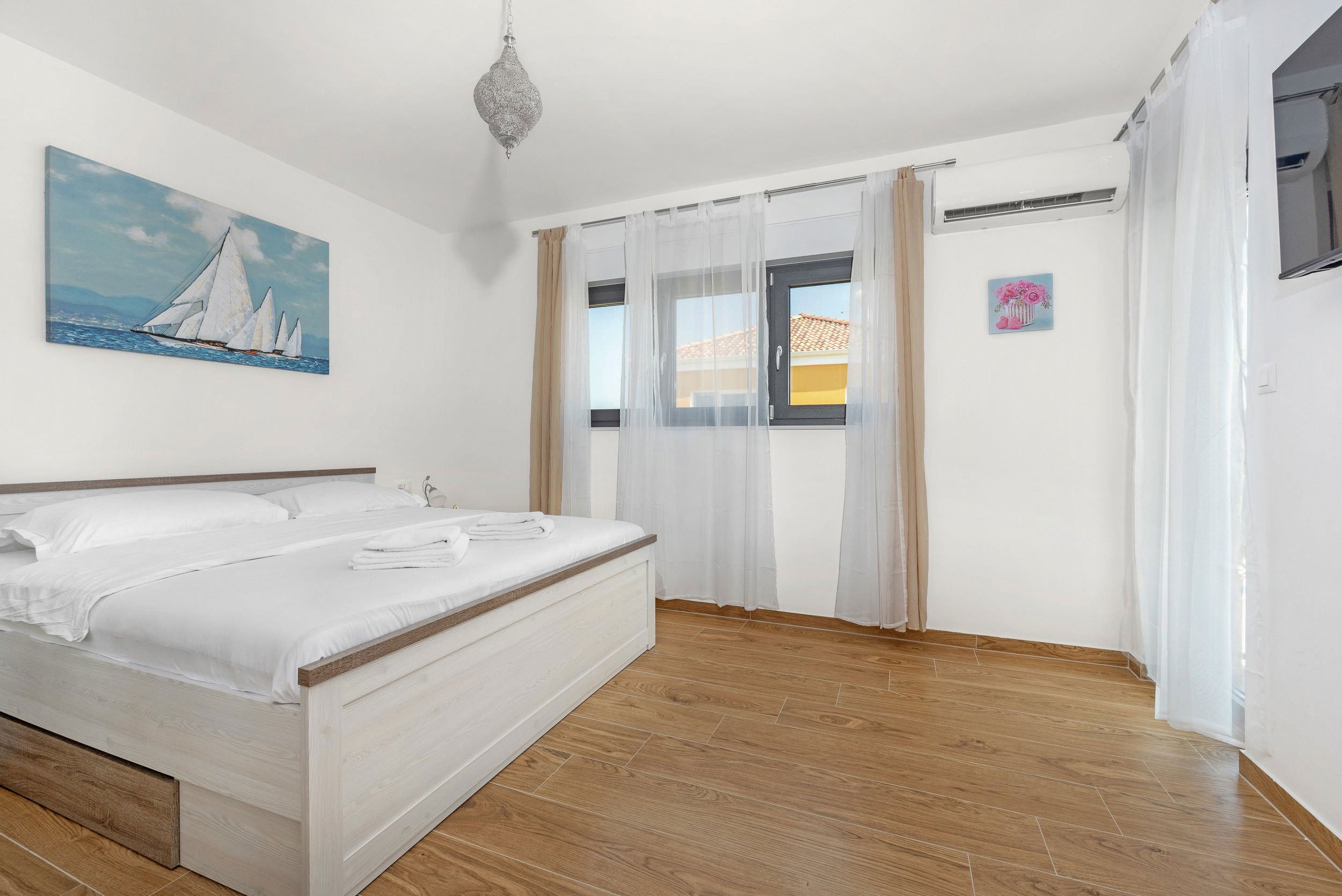 Logement de 200 m² meublé avec goût et de construction récente, avec vue sur la mer.