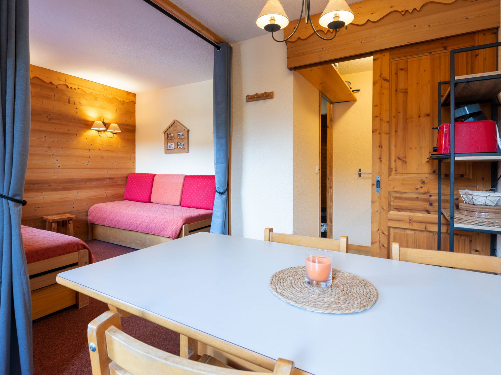 "Les Arcades A", Appartement de 2 pièces 27 m2 au 3ème étage. Logement idéal pour 4 adultes. 1 chambre avec 2 divans-lits et TV. Séjour avec 1 divan-lit et 1 lit gigogne. Cuisine ouverte (lave-vaisselle, 4 plaques vitrocéramiques, bouilloire électrique, micro-ondes, cafetière électrique). Bain/WC. Balcon. Vue sur les pistes de ski. A disposition: fer à repasser. Veuillez noter: logement non-fumeur. Détecteur de fumée. Annonce d'un professionnel (art 155, IV du CGI)