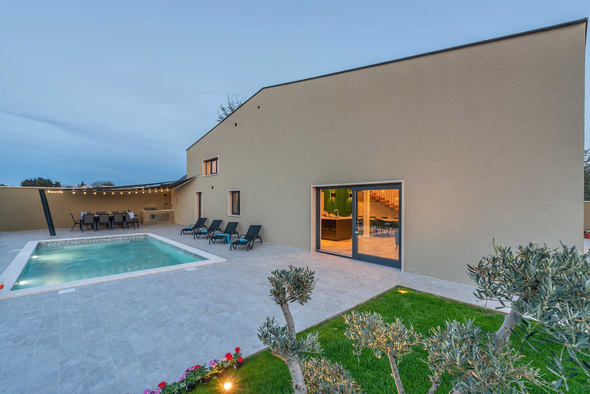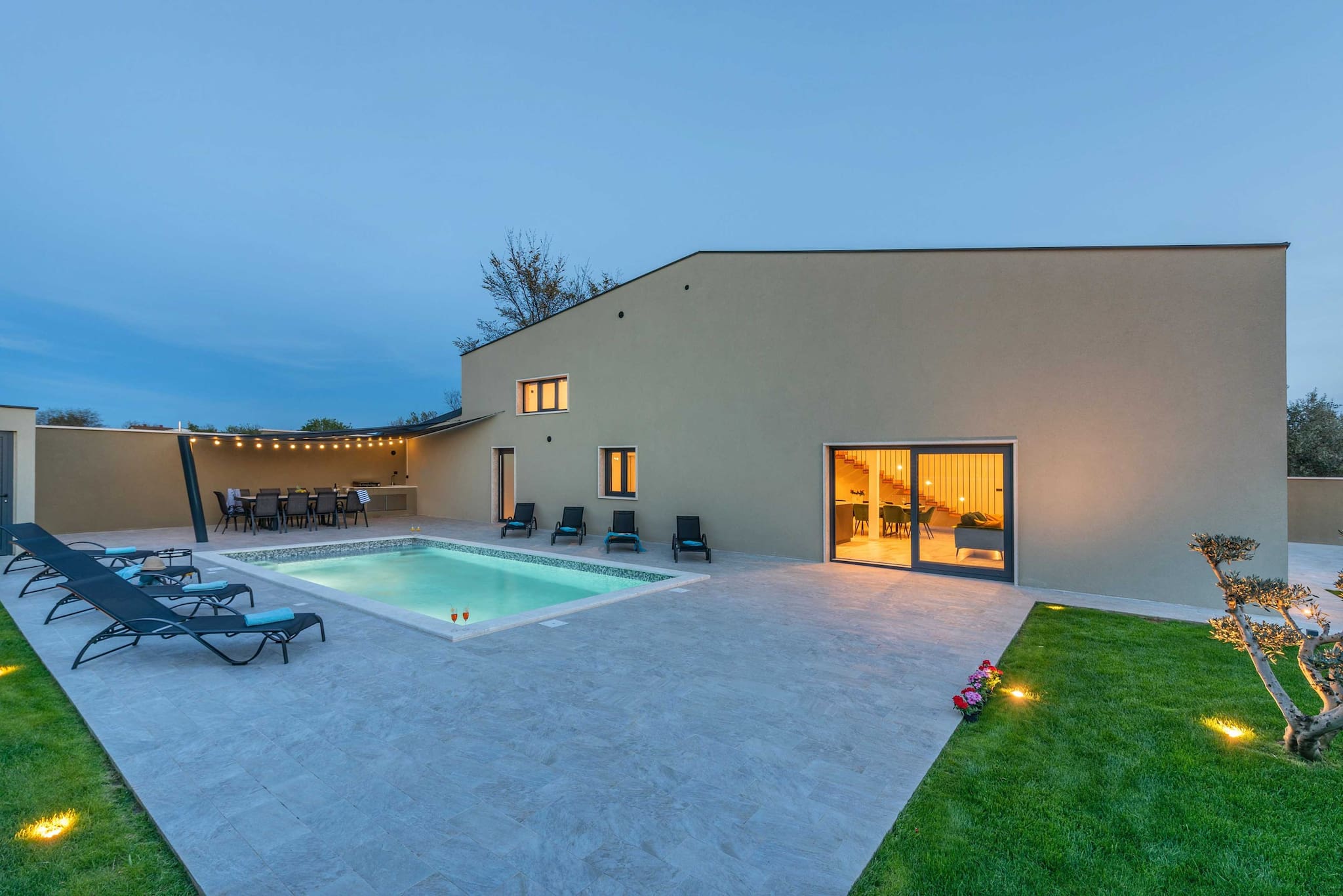 Logement de 300 m² meublé avec goût et moderne, avec vue sur le jardin et la piscine.