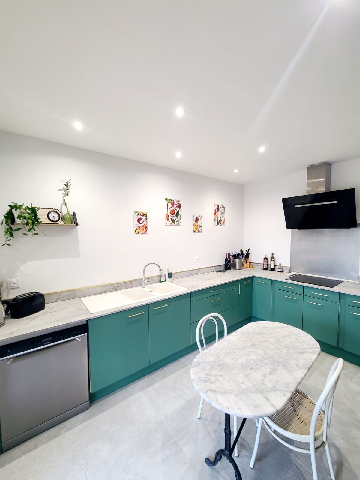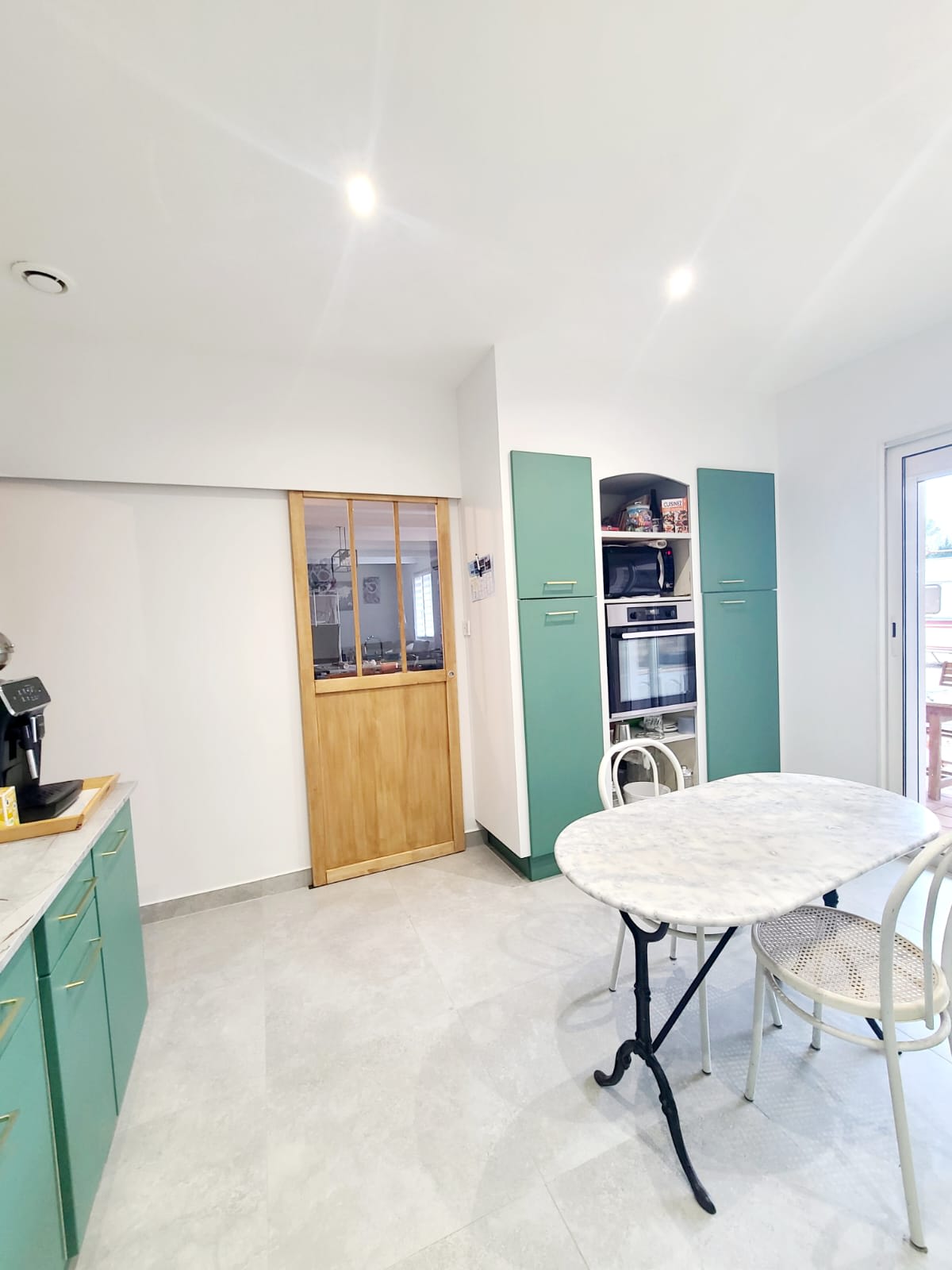 À l’intérieur, la maison s’ouvre sur une entrée accueillante qui mène à un espace salon-salle à manger lumineux et une cuisine semi-ouverte entièrement refaite à neuf. Fonctionnelle et parfaitement équipée, la cuisine dispose également d’un espace annexe pratique pour ranger vos vivres.