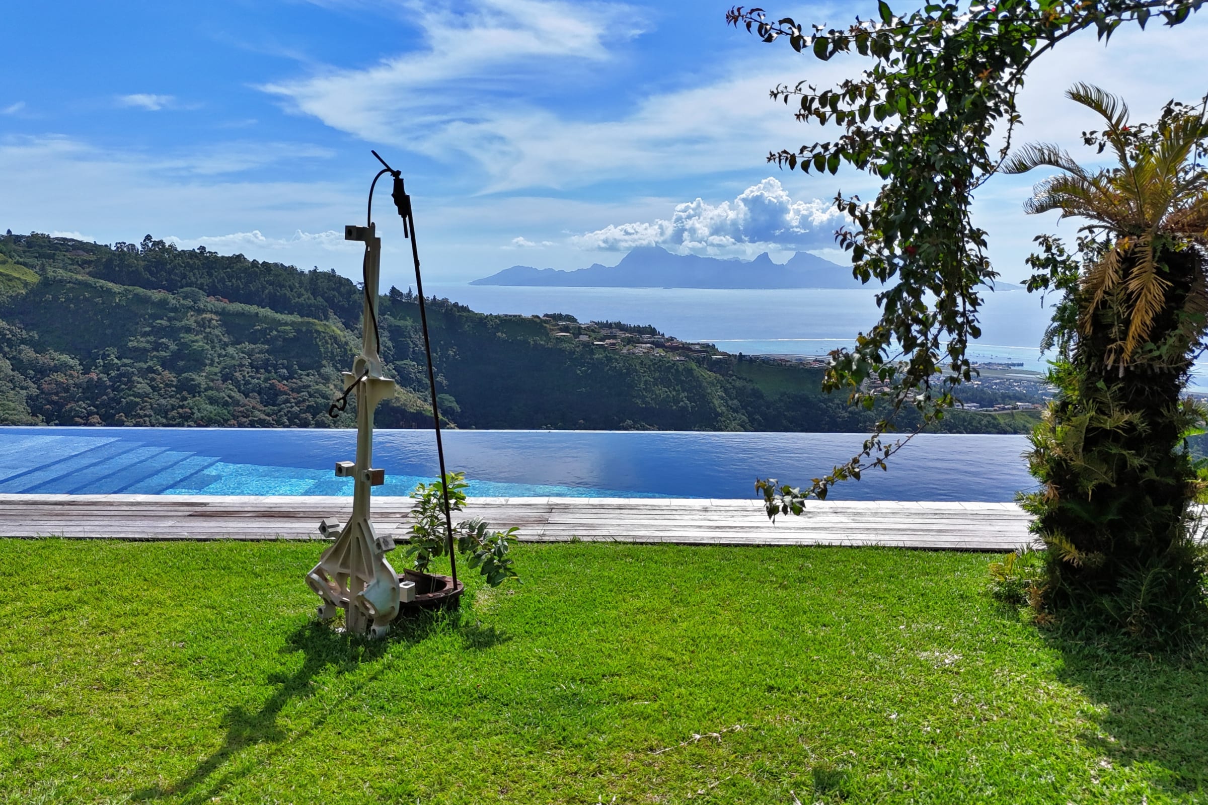 Les espaces extérieurs – piscine à débordement, jardin, terrasse – sont à partager avec la propriétaire, qui réside dans la maison principale. Très rarement présente en journée, elle vous garantit une grande tranquillité tout en restant disponible si besoin.