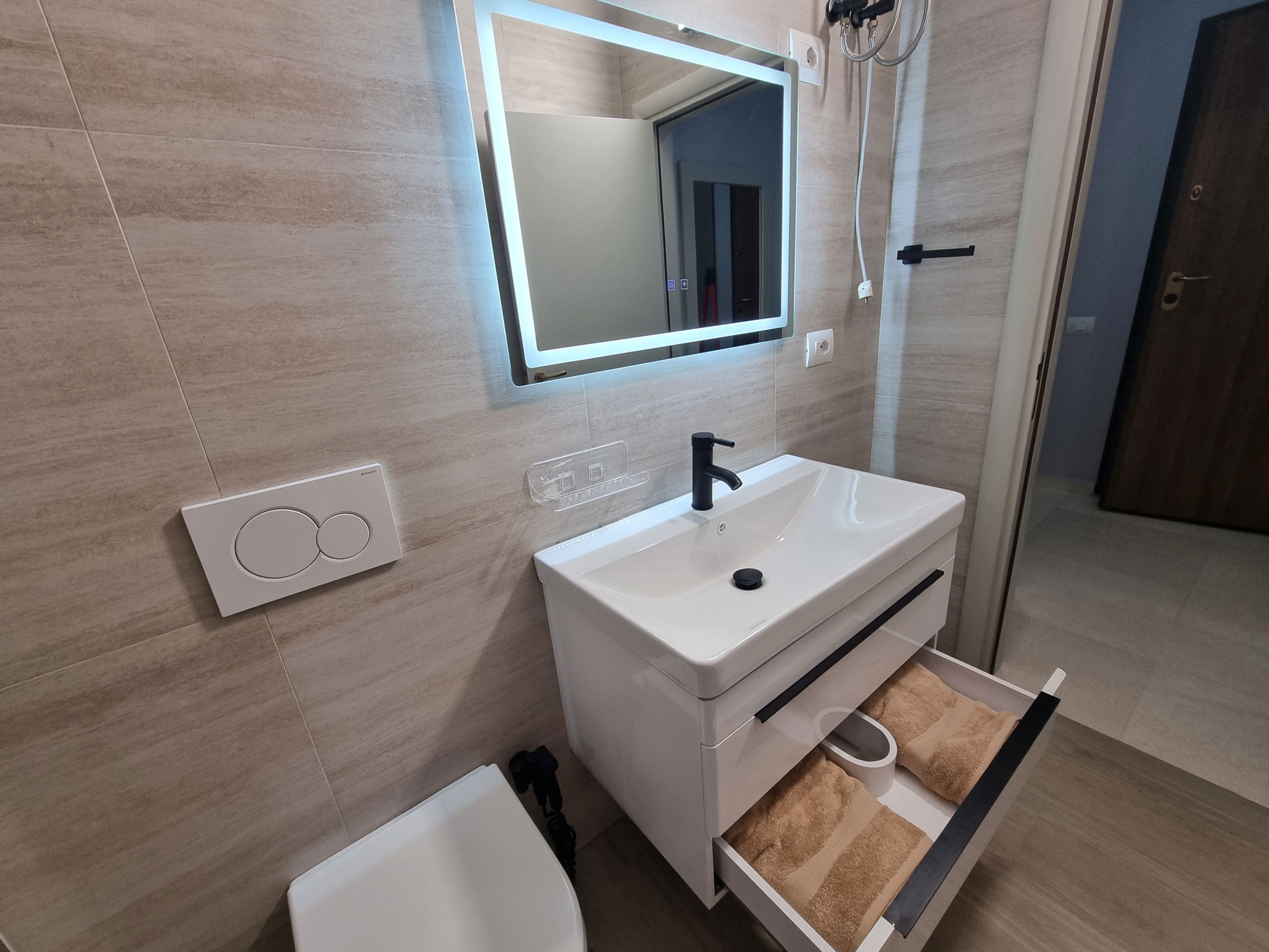 La location se trouve à 0 m du parc, 10 m de la cafétéria, 10 m de la plage de sable "The New Beach", 50 m du supermarché, 50 m du restaurant, 145 m de l'aéroport "Tirana International Airport", 1 km de la plage de roche "Jonufra", 45 km du parc naturel "Llogara National Park" et il est situé dans une zone résidentiel zone et près de la mer.