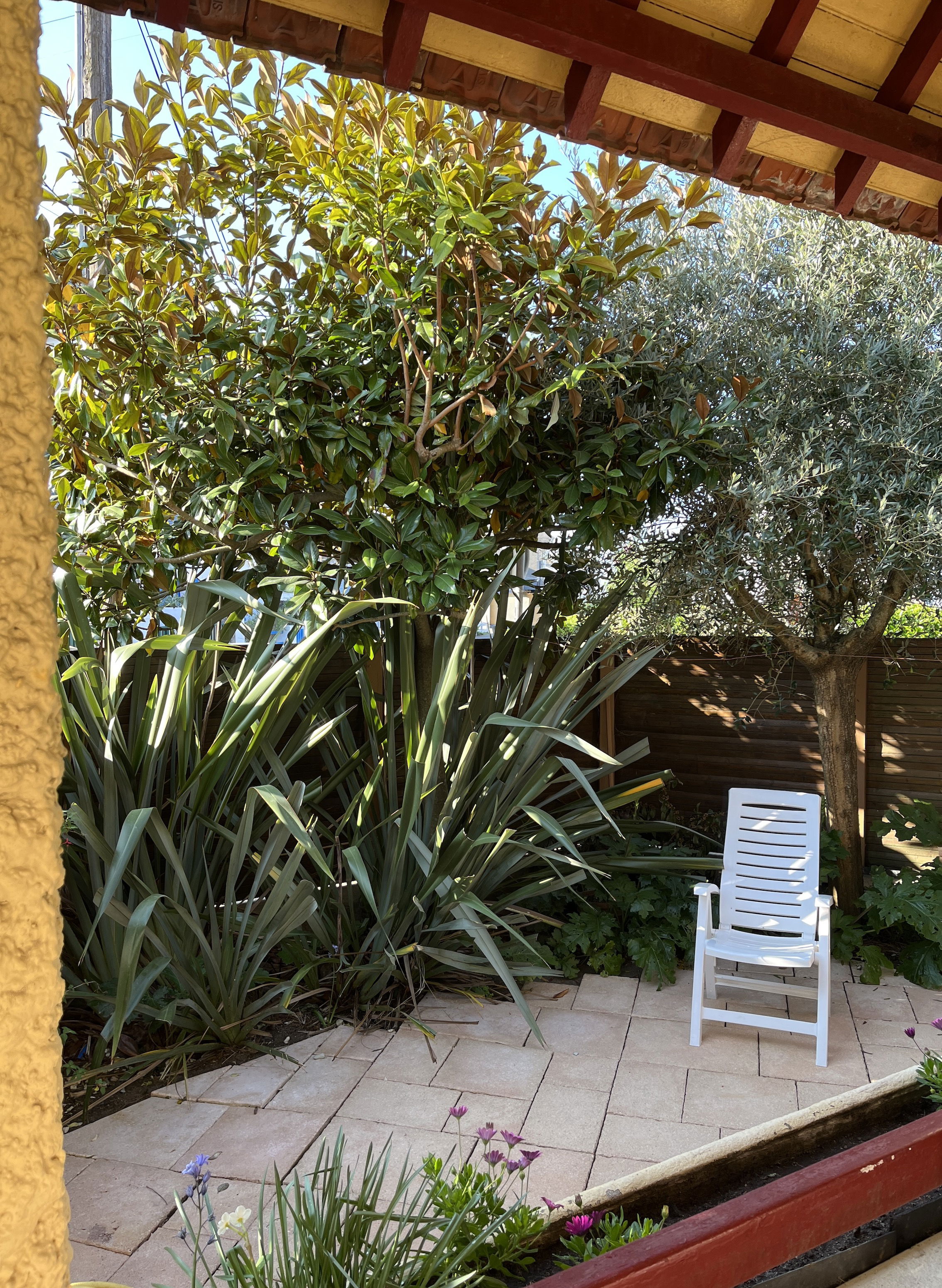 Profitez d’une terrasse exposée plein sud équipée de mobilier de jardin et transats, parfaite pour les repas en extérieur ou les après-midis de détente. Le tout donne sur un jardin clos, idéal pour les familles ou tout simplement pour savourer le calme.