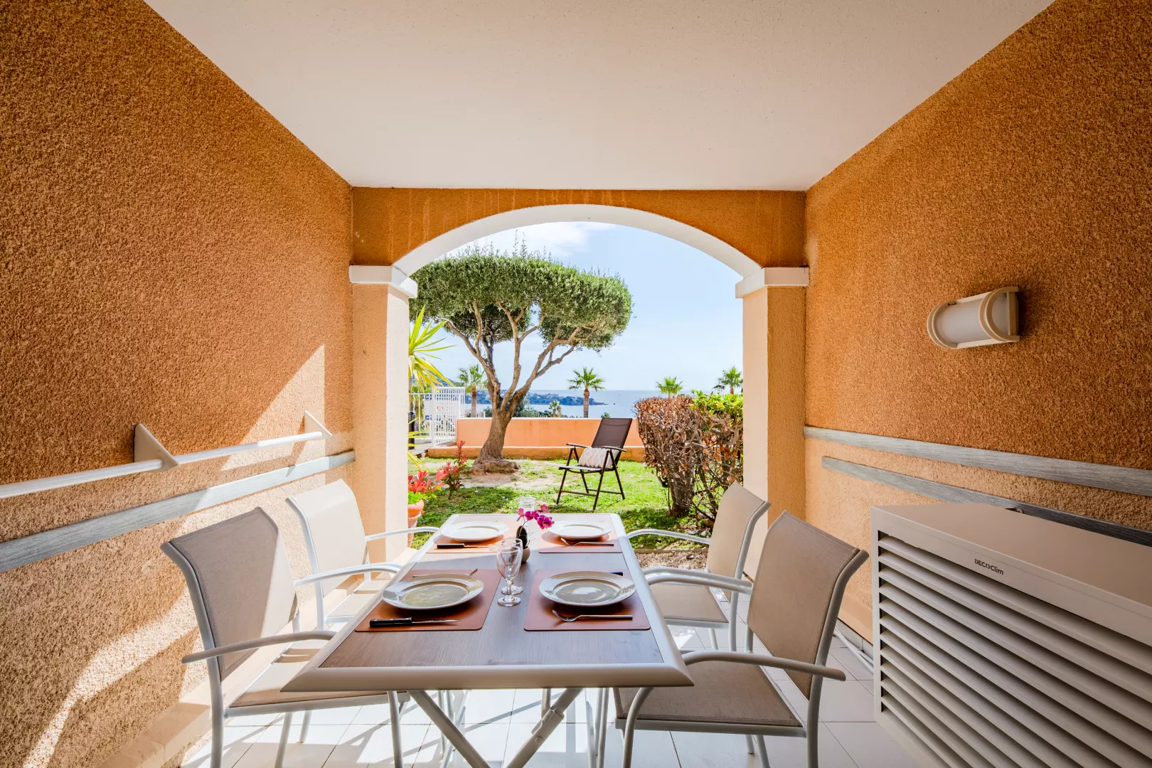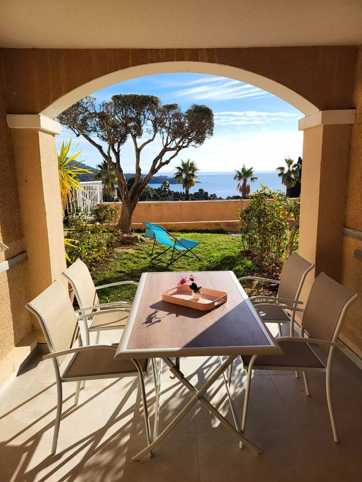 Les atouts de ce logement super Home : Idéalement situé au cœur du village, vue sur les piscines et une belle vue sur la mer, terrasse prolongée par un jardinet, télévision, Wifi, coffre-fort, terrasse.