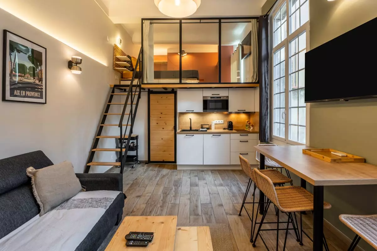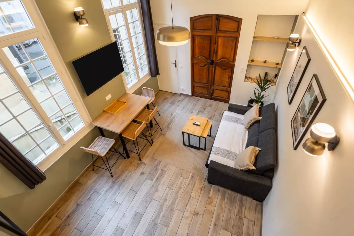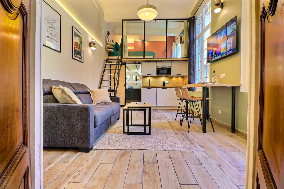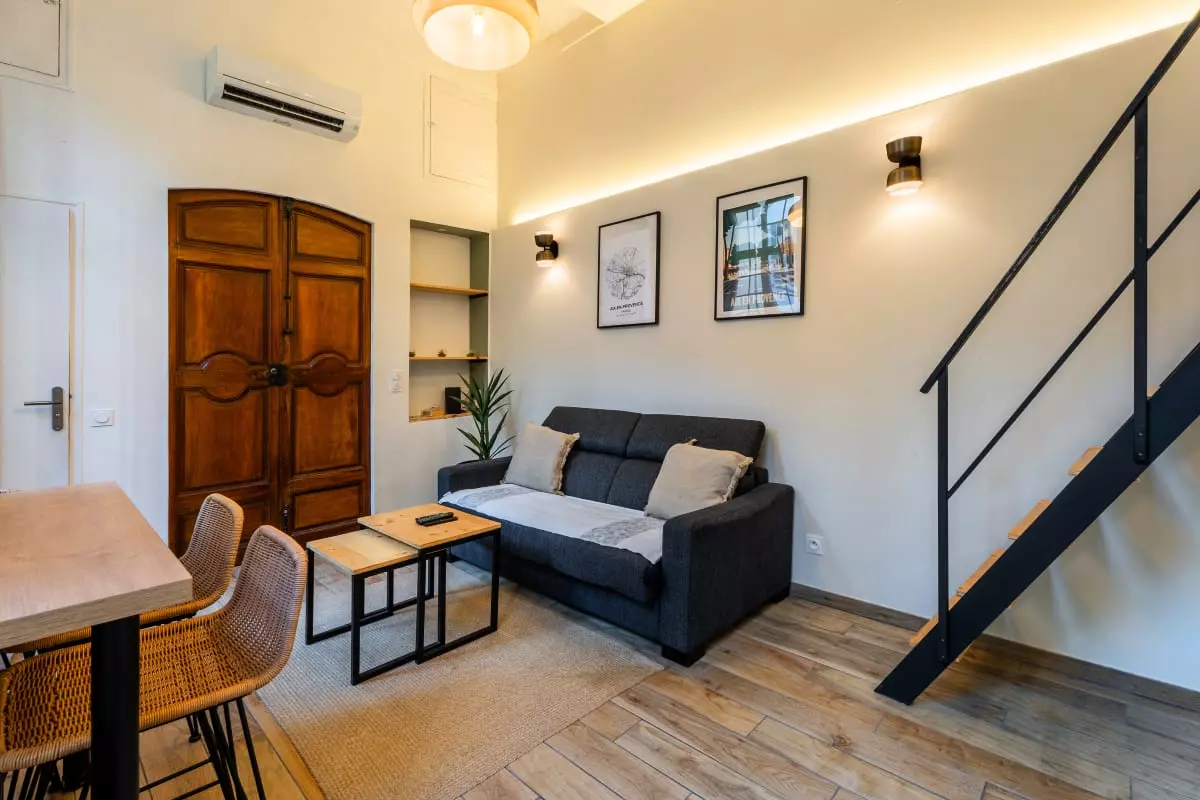 Bienvenue au Duplex Mirabeau, un meublé de tourisme 3 étoiles entièrement rénové, niché dans le centre historique d’Aix-en-Provence, à quelques mètres seulement du célèbre Cours Mirabeau. Ce duplex avec mezzanine est idéal pour un séjour romantique à deux, une escapade culturelle ou un déplacement professionnel en plein centre-ville.
