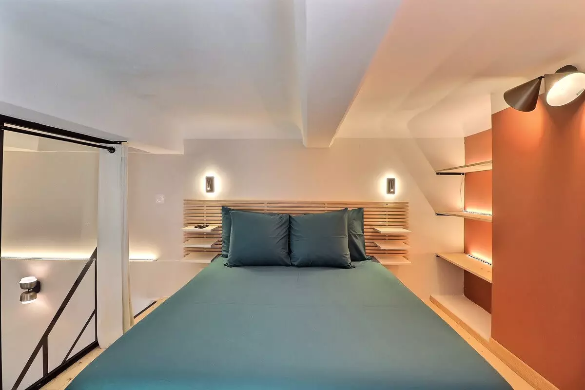 La mezzanine est équipée d'un lit double confortable et de rangements pour vos effets personnels. La salle de bain est équipée d'une douche italienne pour se détendre après une journée bien remplie.